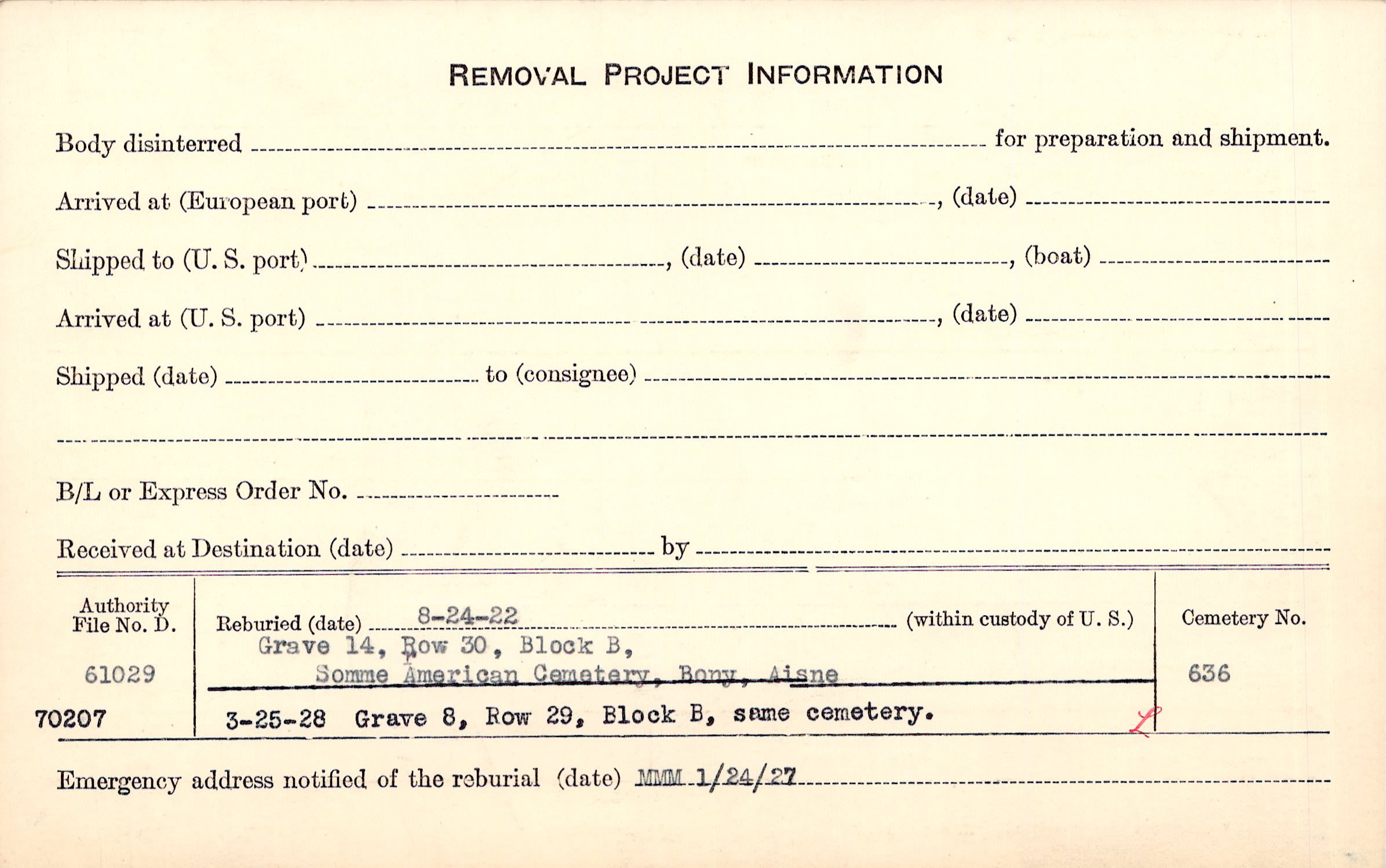 Prior Burial in Foreign Cemetery |