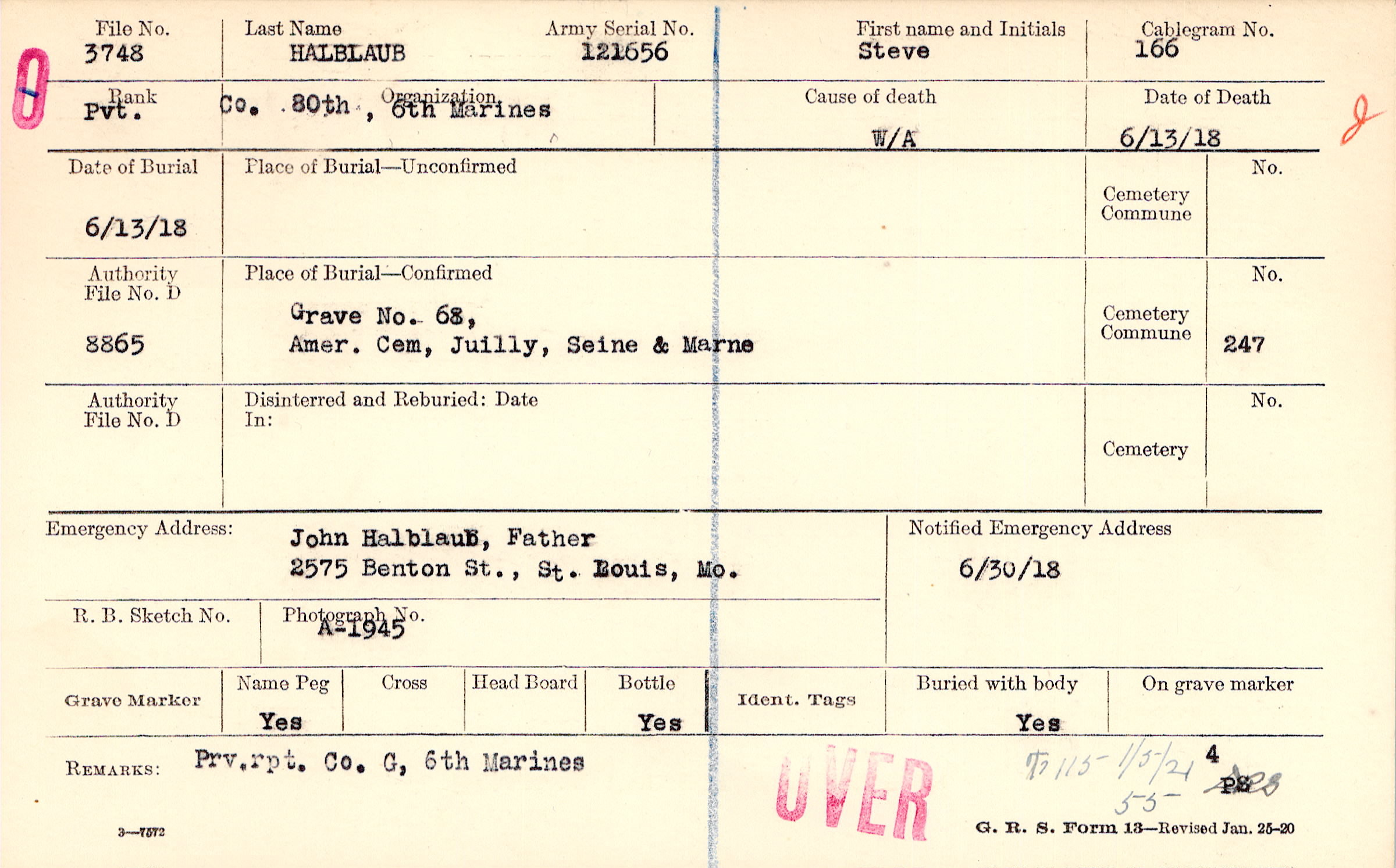 Grave 68, Amer. Cem, Juilly, Seine & Marne