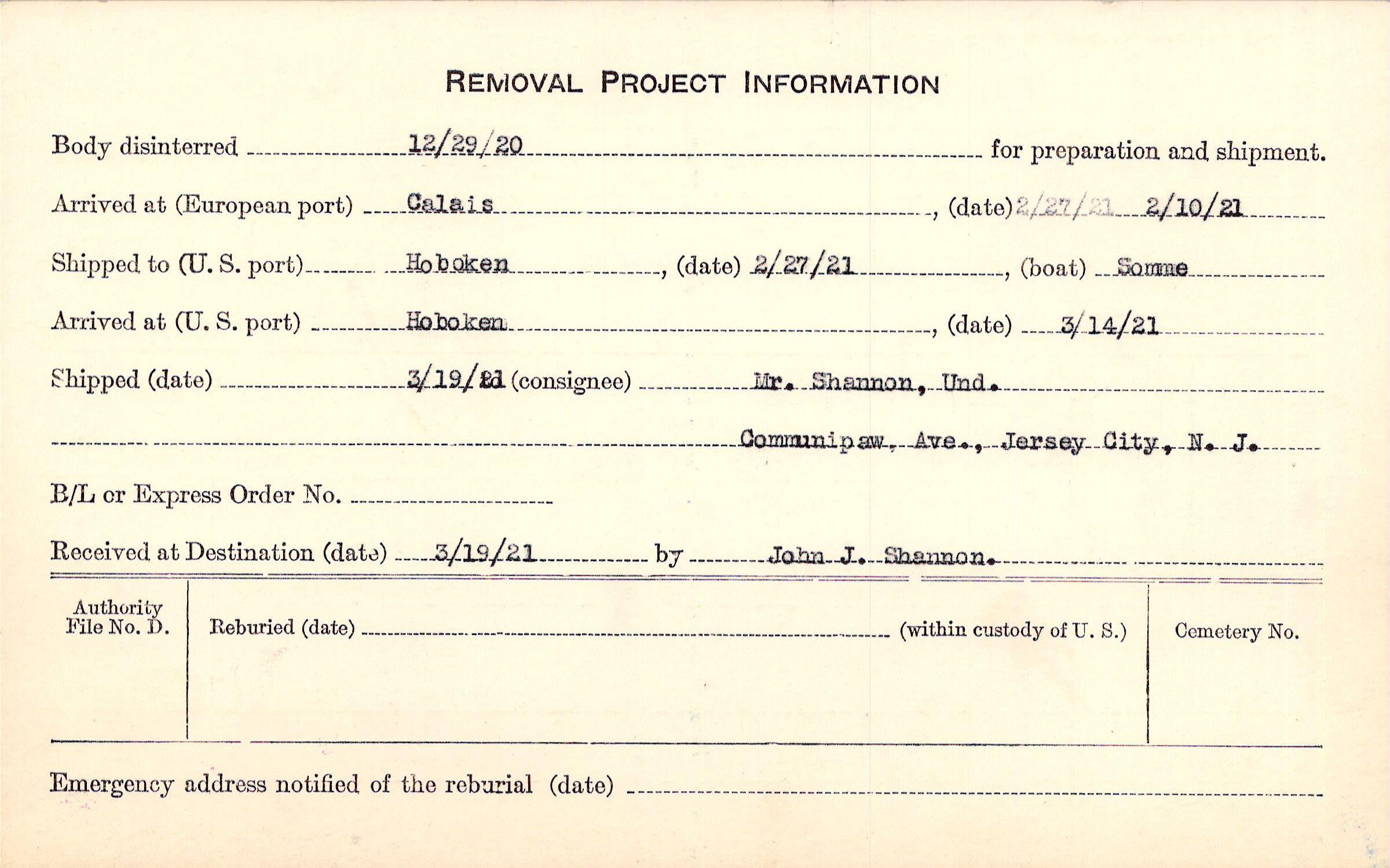 to Mr. Shannon, Und., Communipaw Ave., Jersey City, N. J.