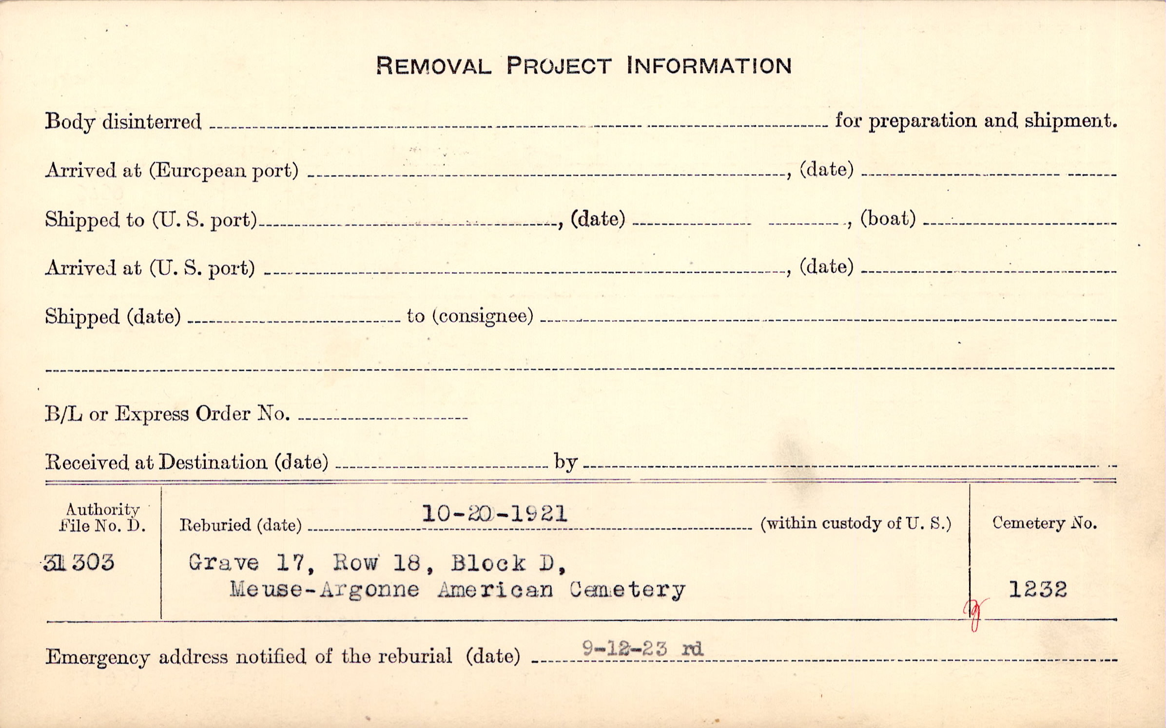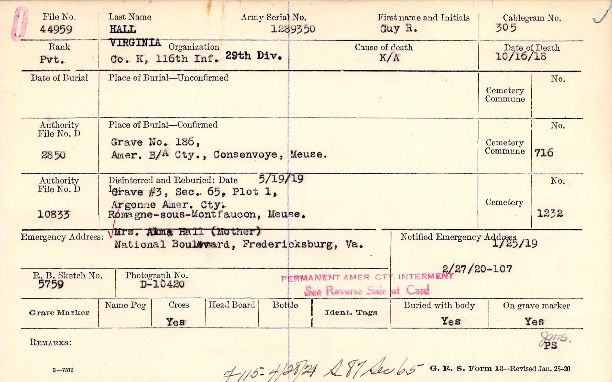Grave 186,Amer. B/A Cty., Consenvoye, Meuse.