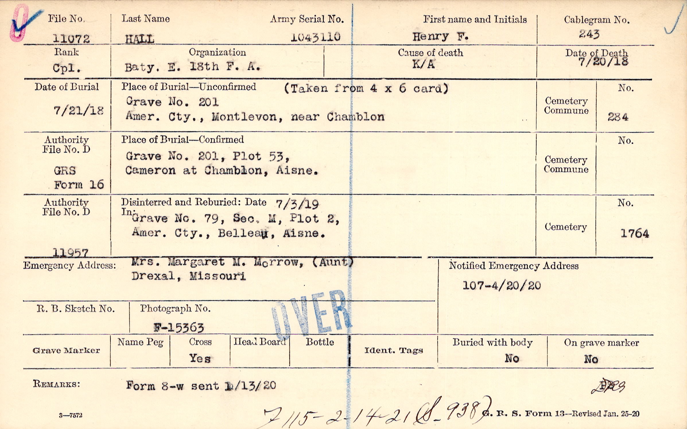 Grave 79, Section M, Plot 2, American Cemetery, Belleau, Aisne