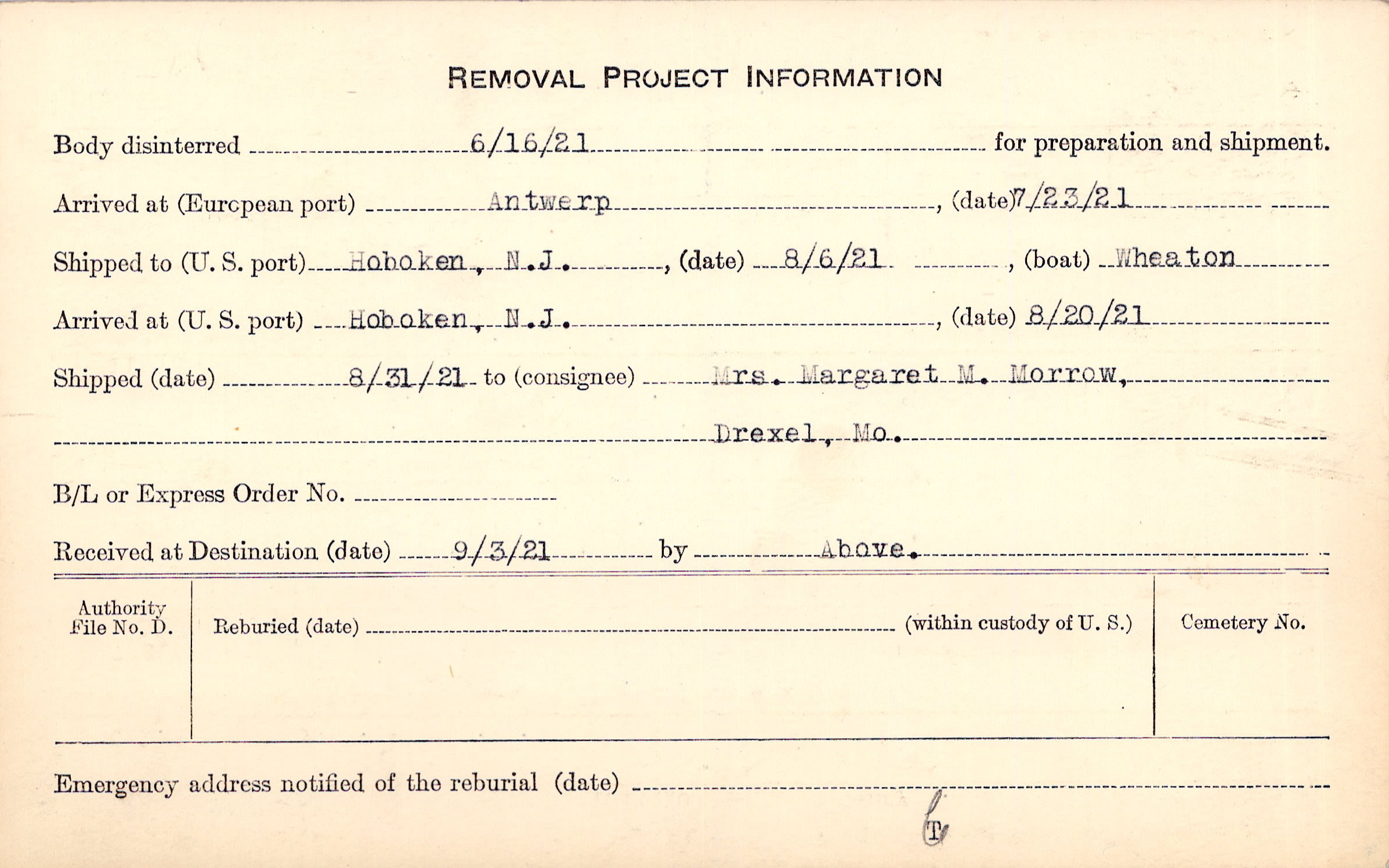 Mrs. Margaret M. Morrow, (Aunt), Drexal, Missouri
