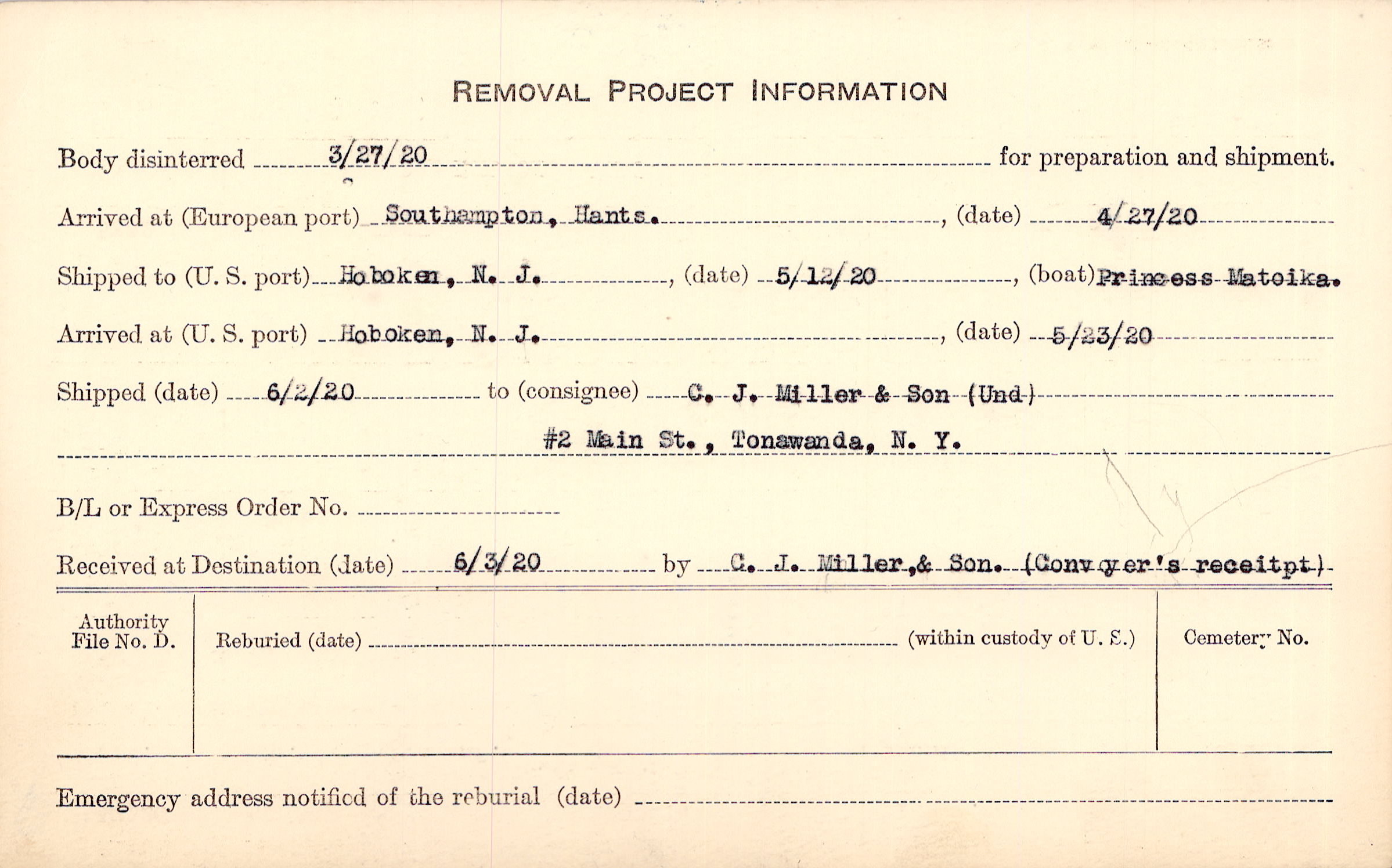 to C. J. Miller & Son (Und), #2 Main St., Tonawanda, N. Y.