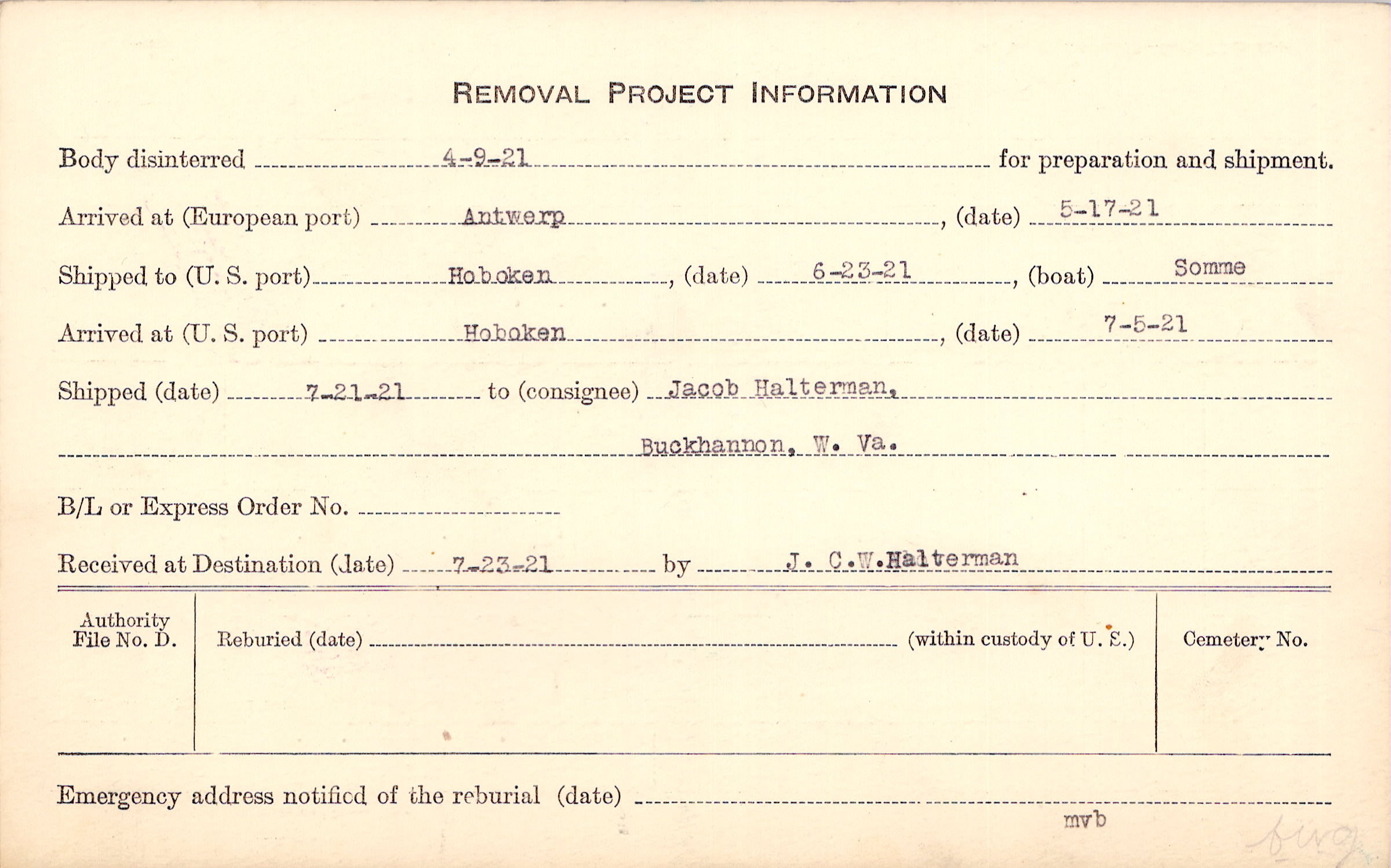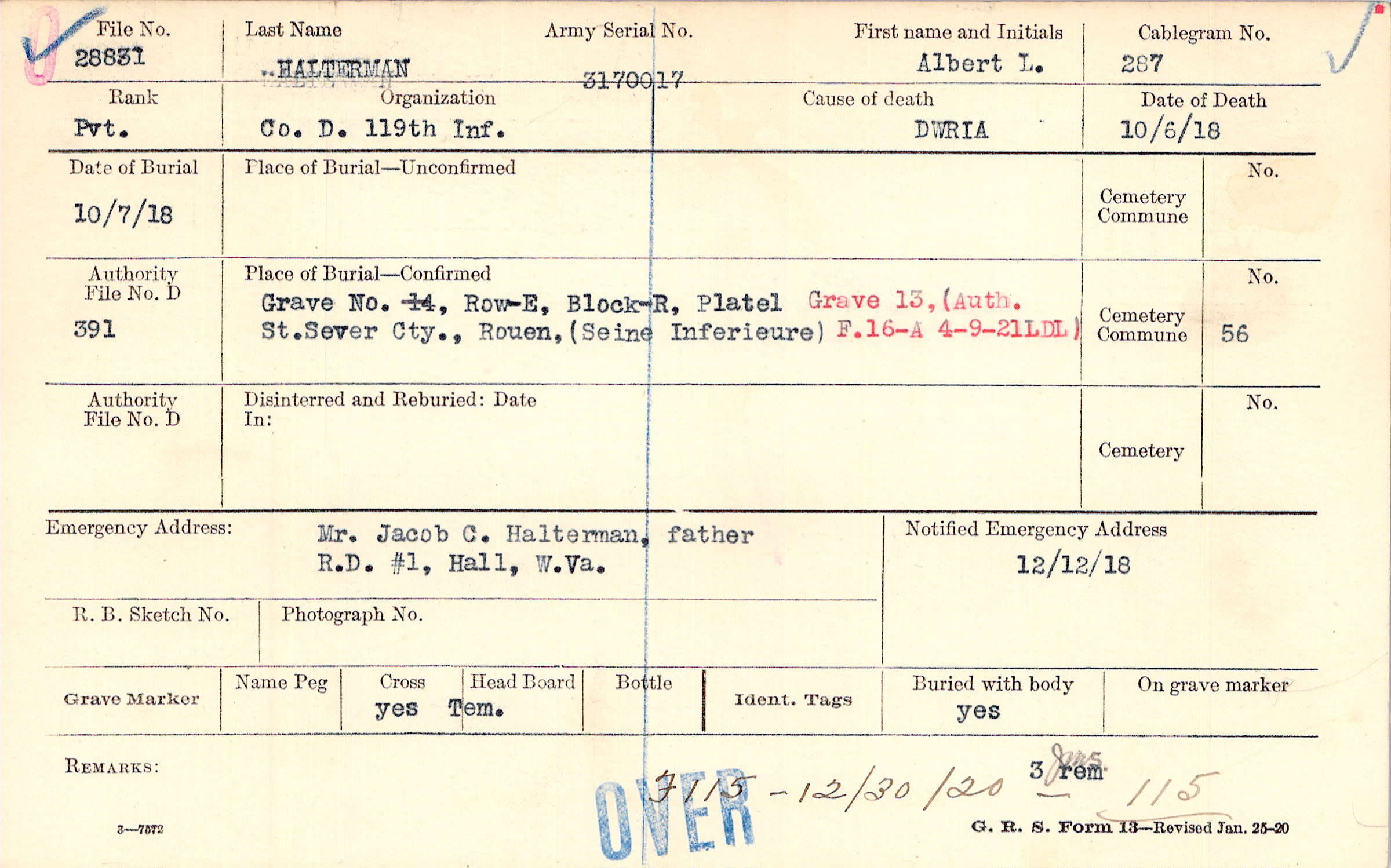 Mr. Jacob C. Halterman, father, R.D. #1, Hall, W.Va.