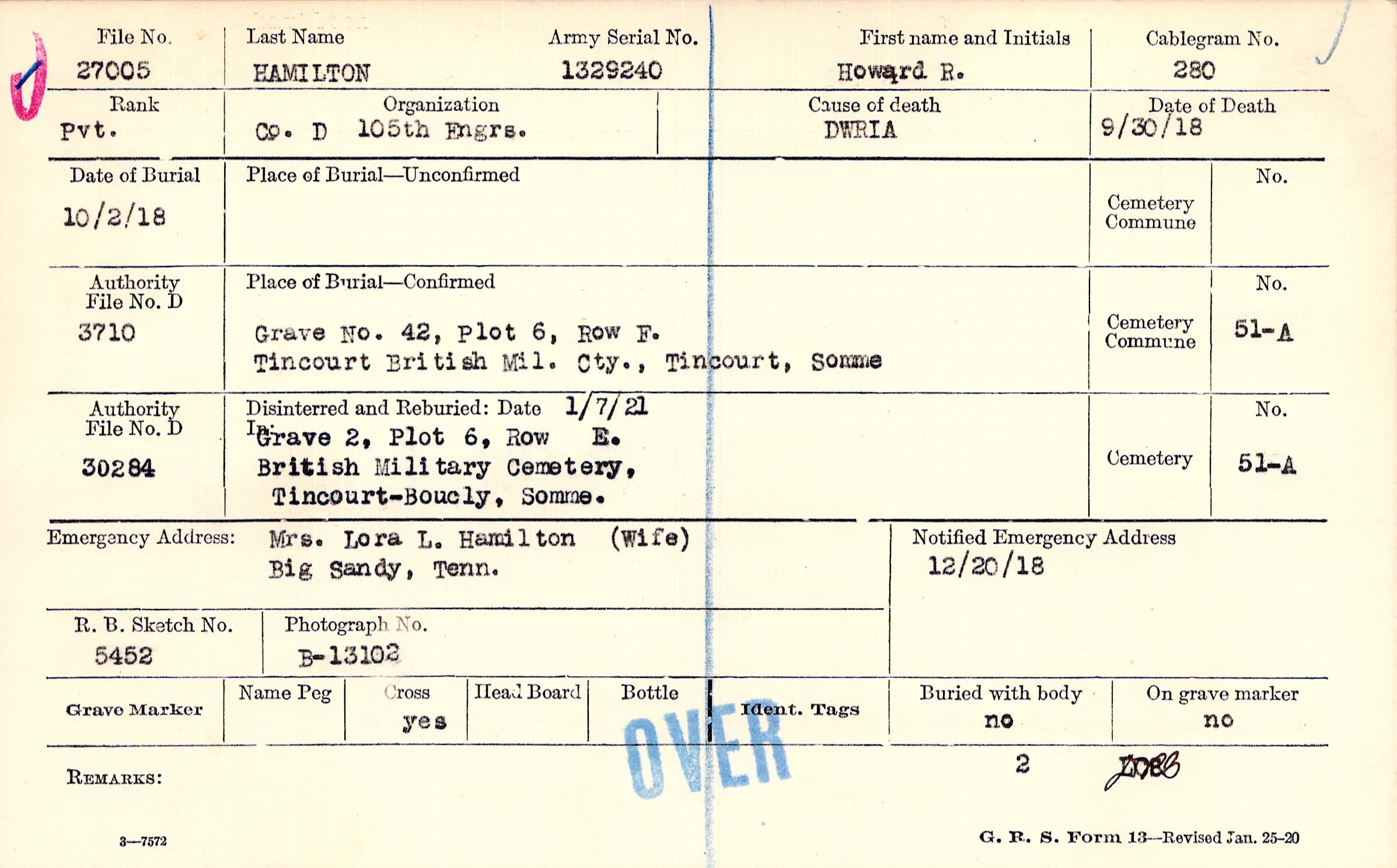 Mrs. Lora L. Hamilton (Wife), Big Sandy, Tenn.