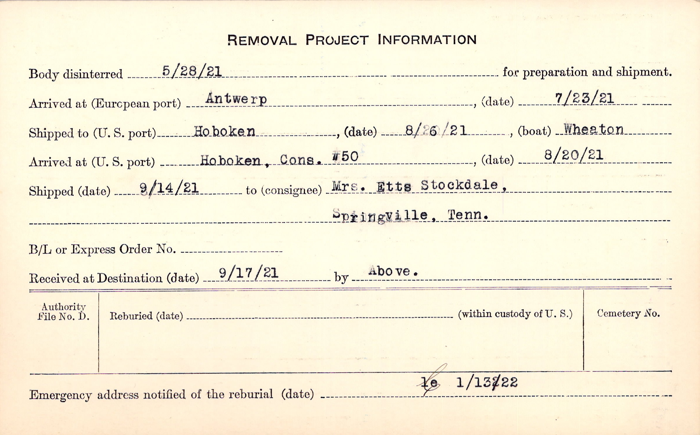 to Mrs. Etts Stockdale, Springville, Tenn.