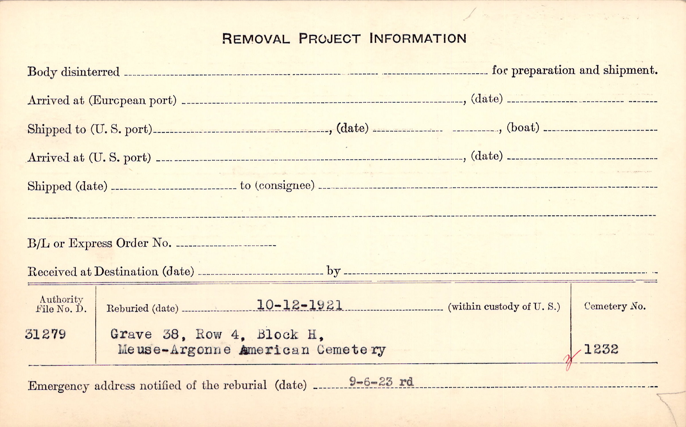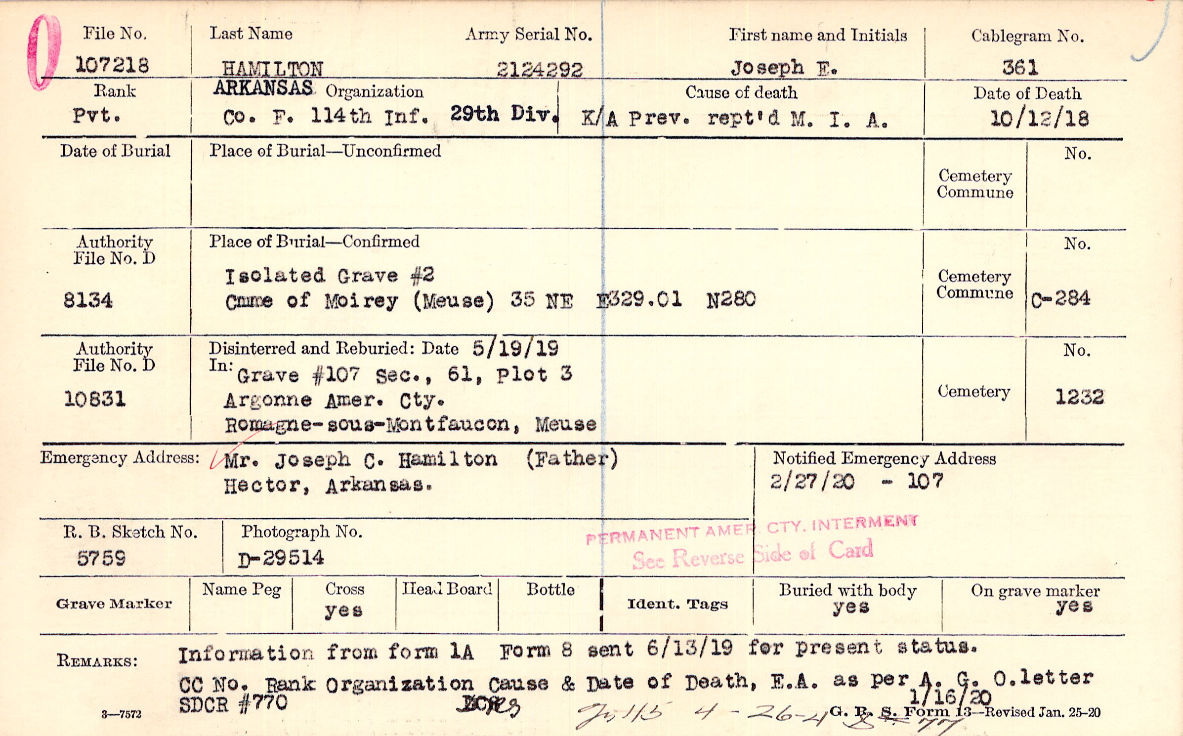 Grave 107, Section 61, Plot 3, Argonne American Cemetery, Romagne-sous-Montfaucon, Meuse