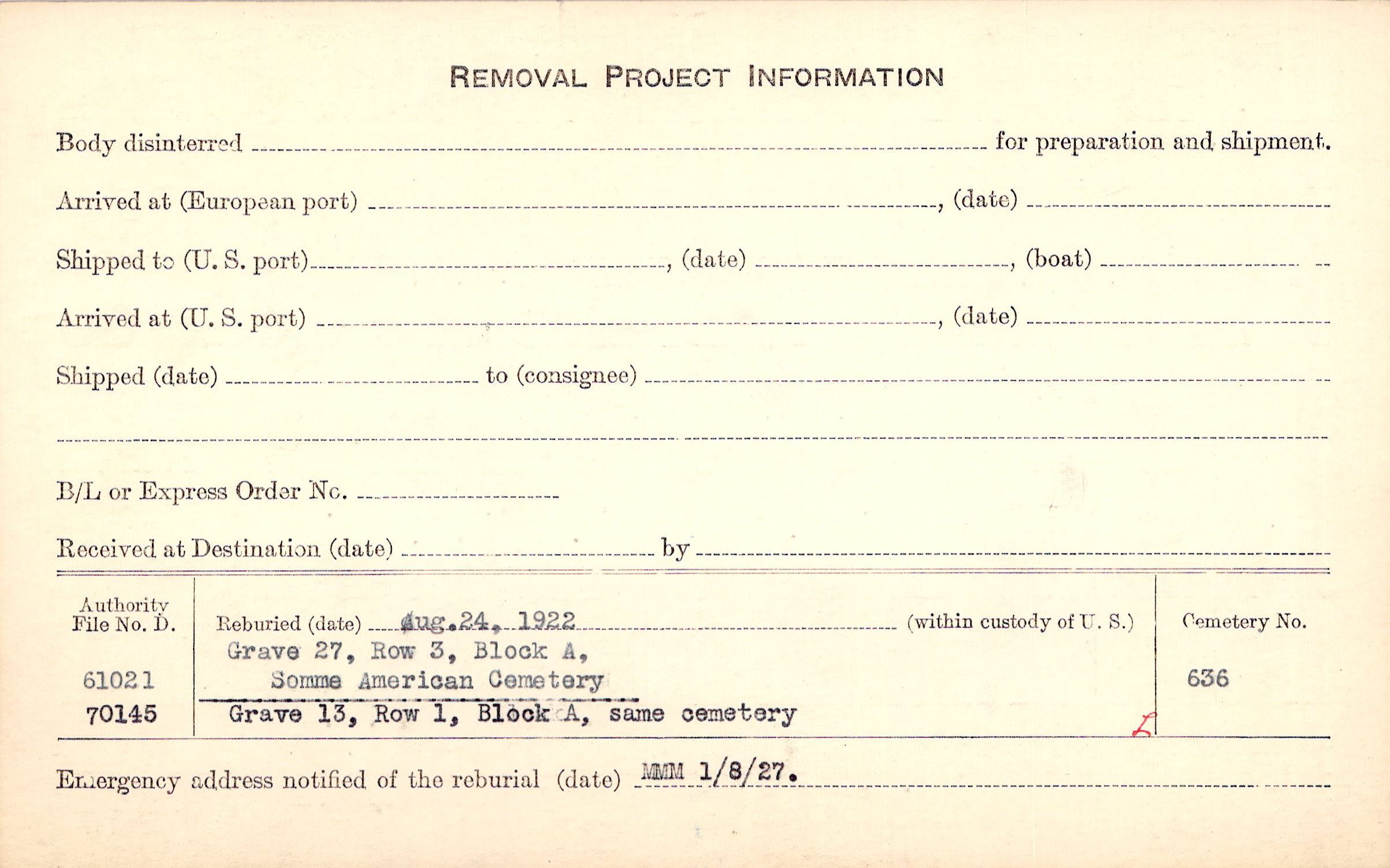 Prior Burial in Foreign Cemetery |