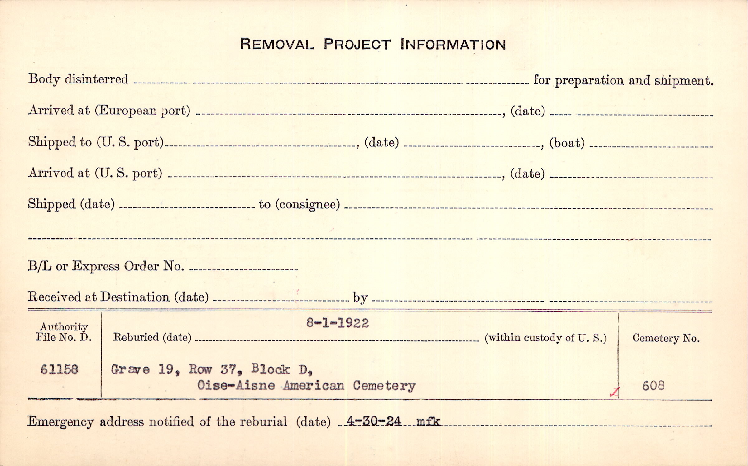 Grave 93, Amer Cty., Juvigny, Aisne.