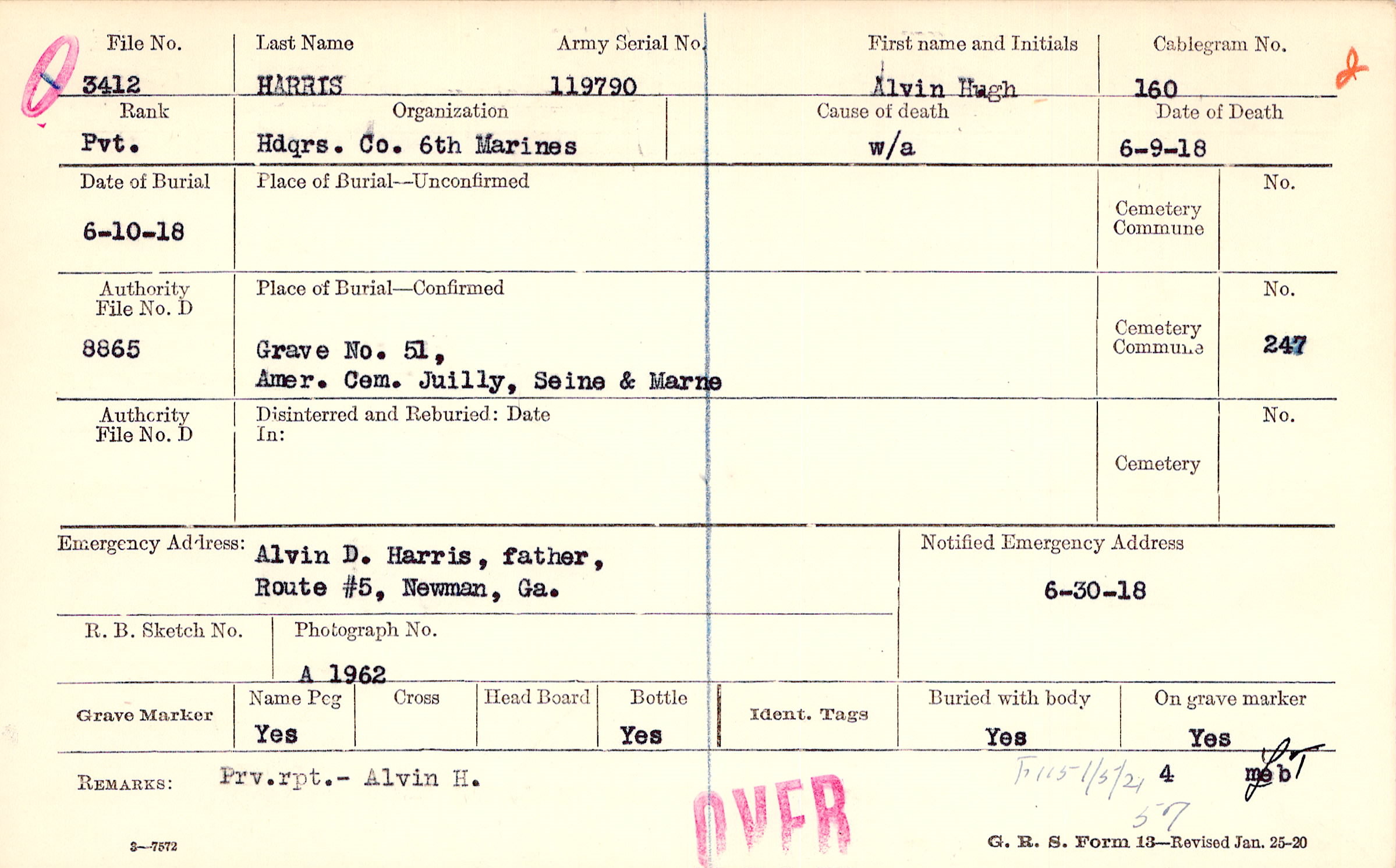 Grave NO. 51, Amer. Cem. Juilly, Seine & Marne