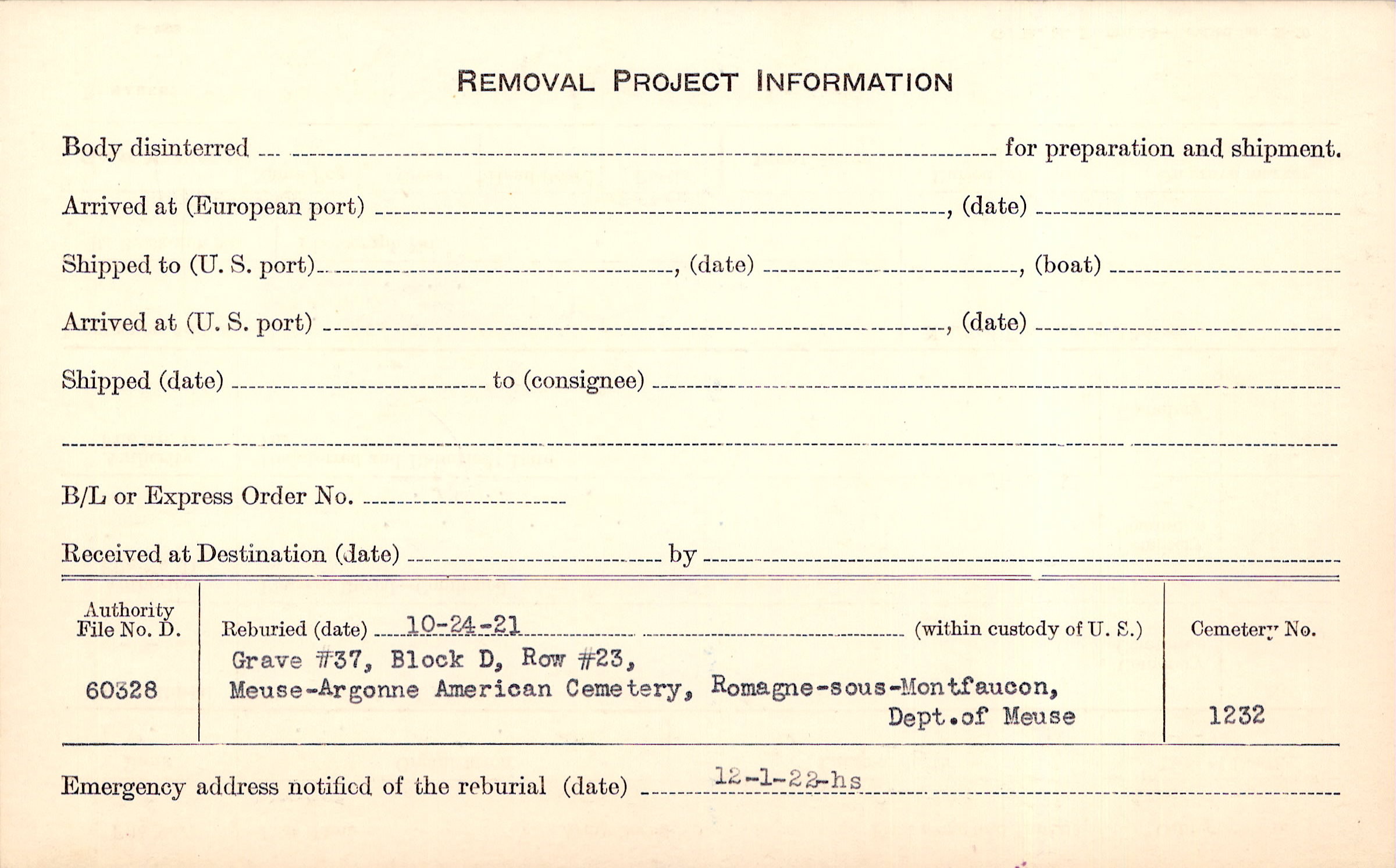 | Permanent Burial in Foreign Cemetery |
