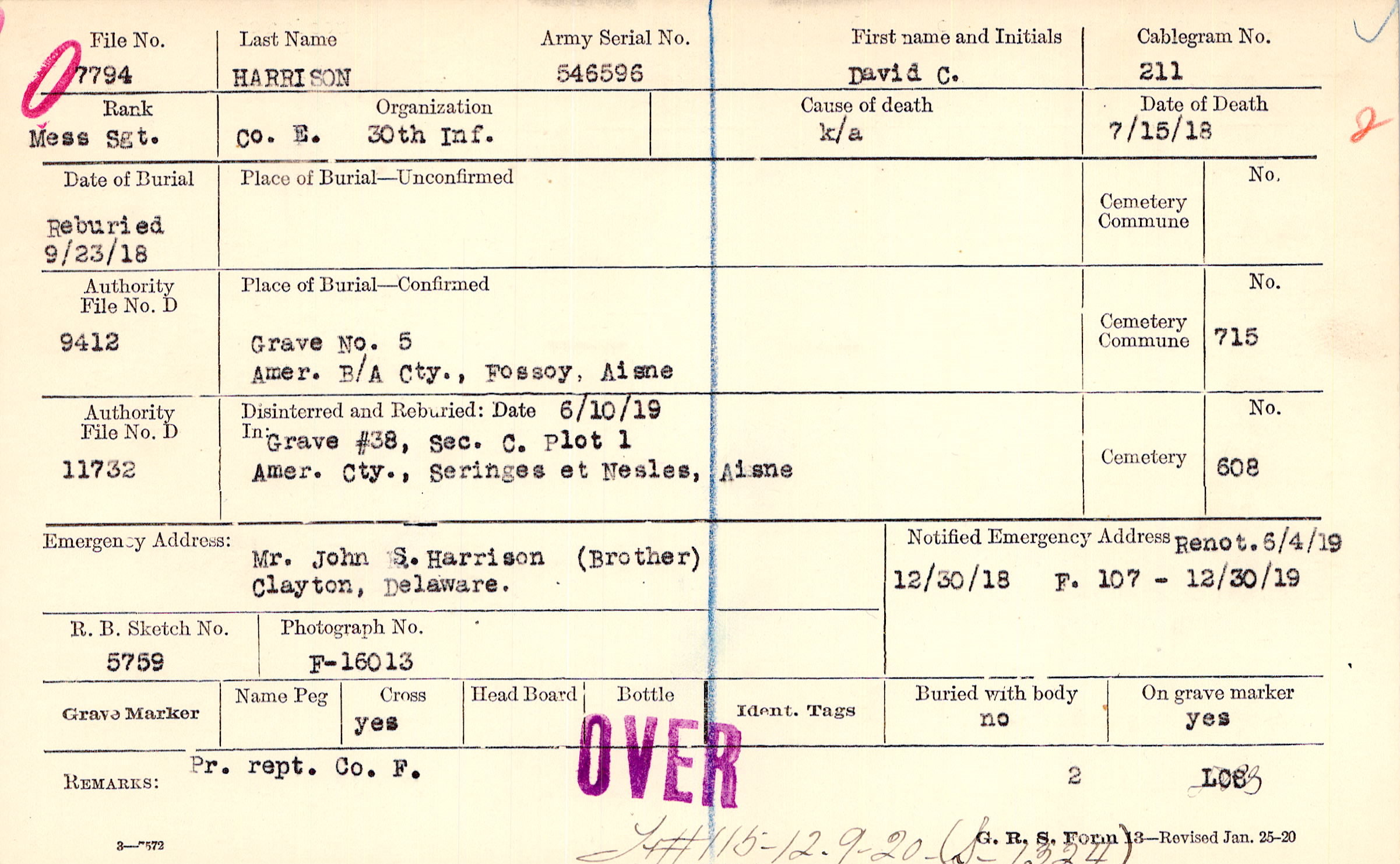 Renot 6/4/1919, 12/30/1918, F Form 107: 12/30/1919