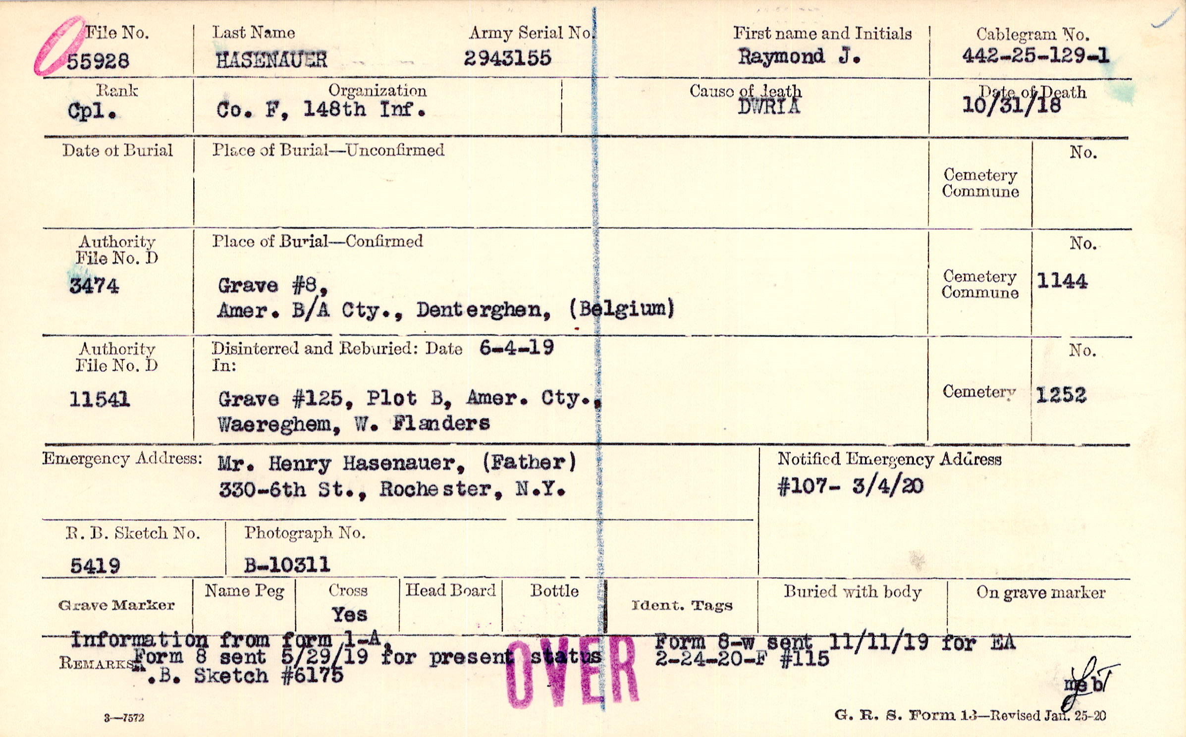 Grave #8, Amer. B/A Cty., Denterghen, Belgium