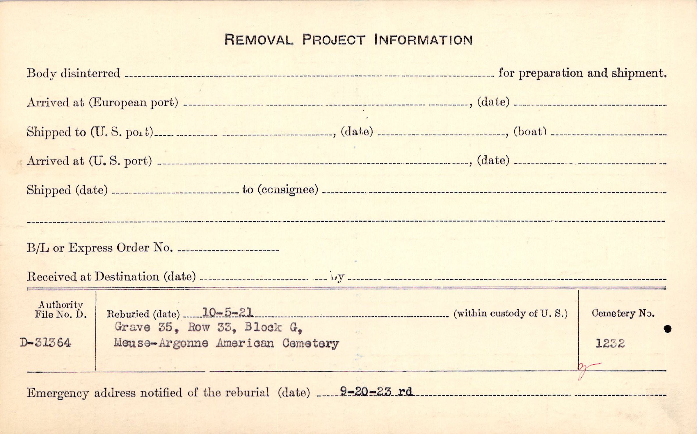 | Permanent Burial in Foreign Cemetery |