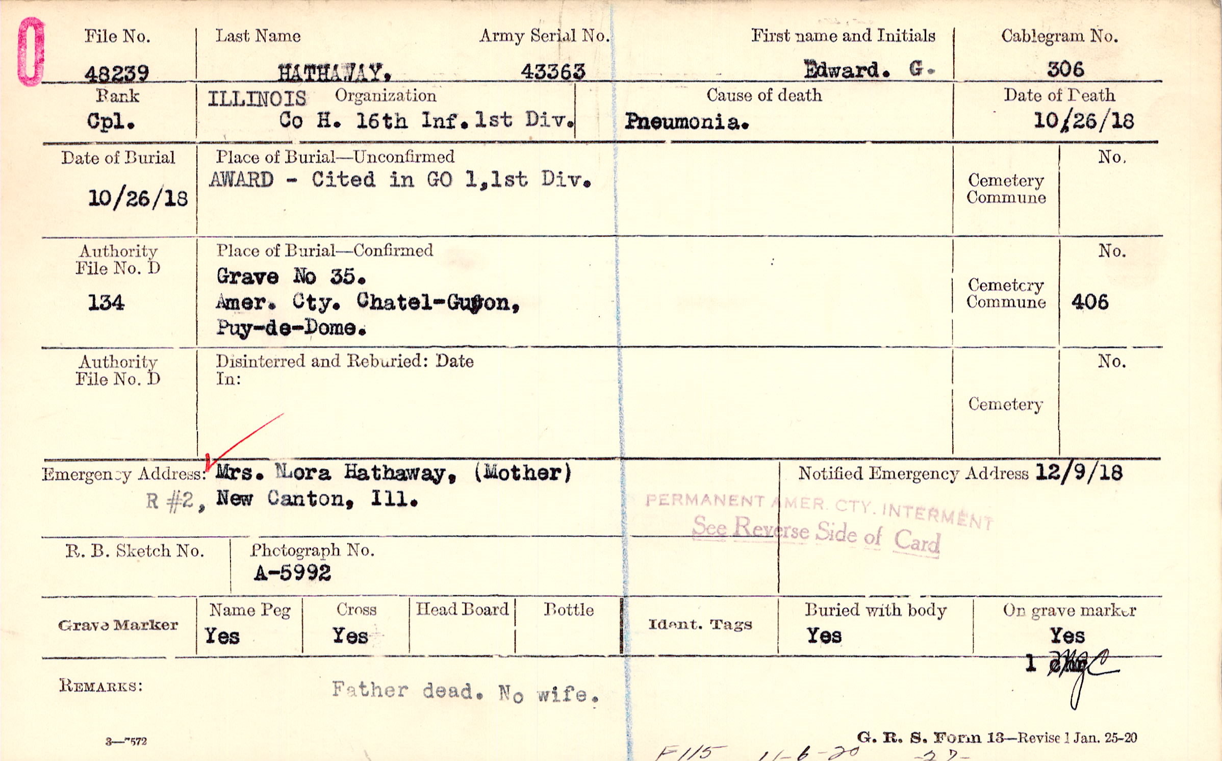 Grave 35, Amer. Cty. Chatel-Guyon, Puy-de-Dome