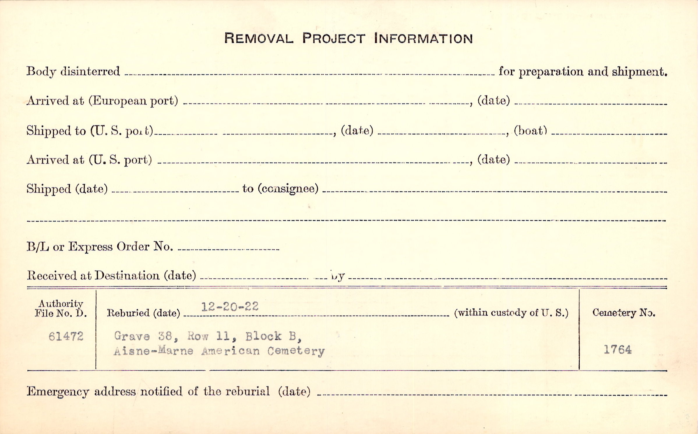 | Permanent Burial in Foreign Cemetery |