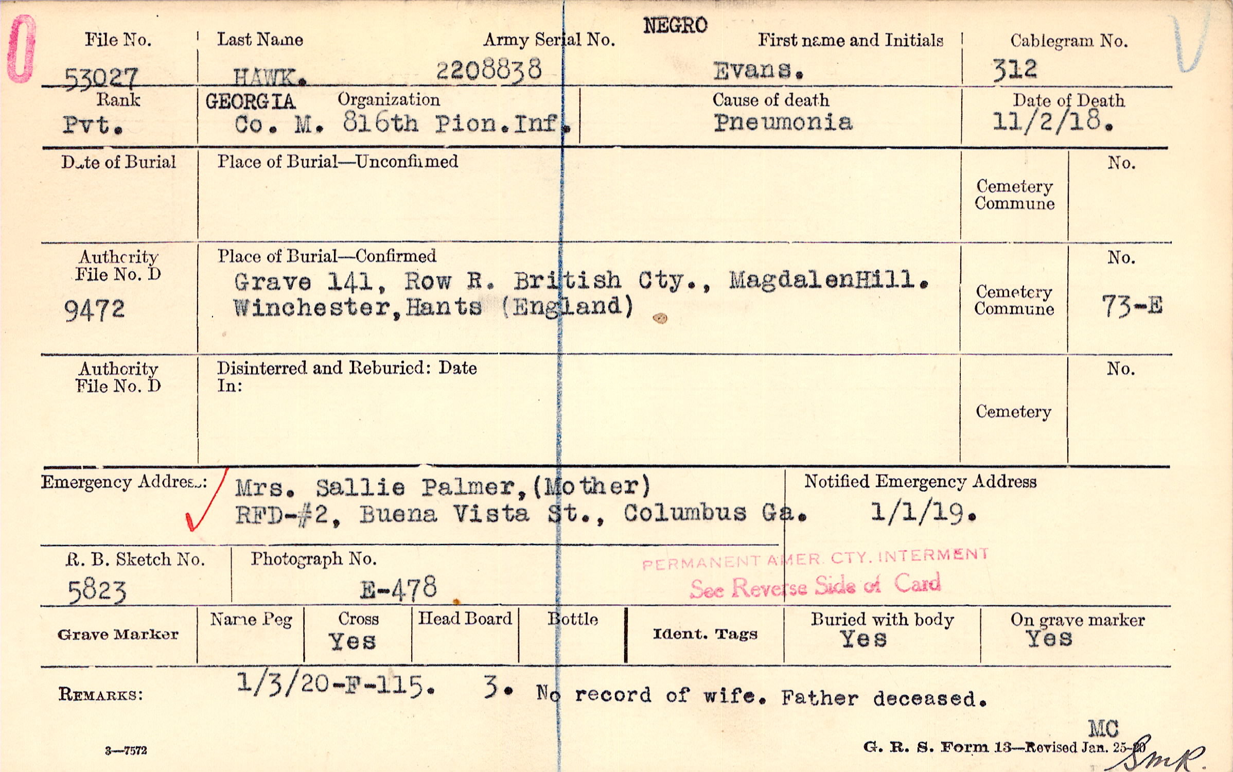 Mrs. Sallie Palmer, (Mother), RFD-#2, Buena Vista St., Columbus Ga.