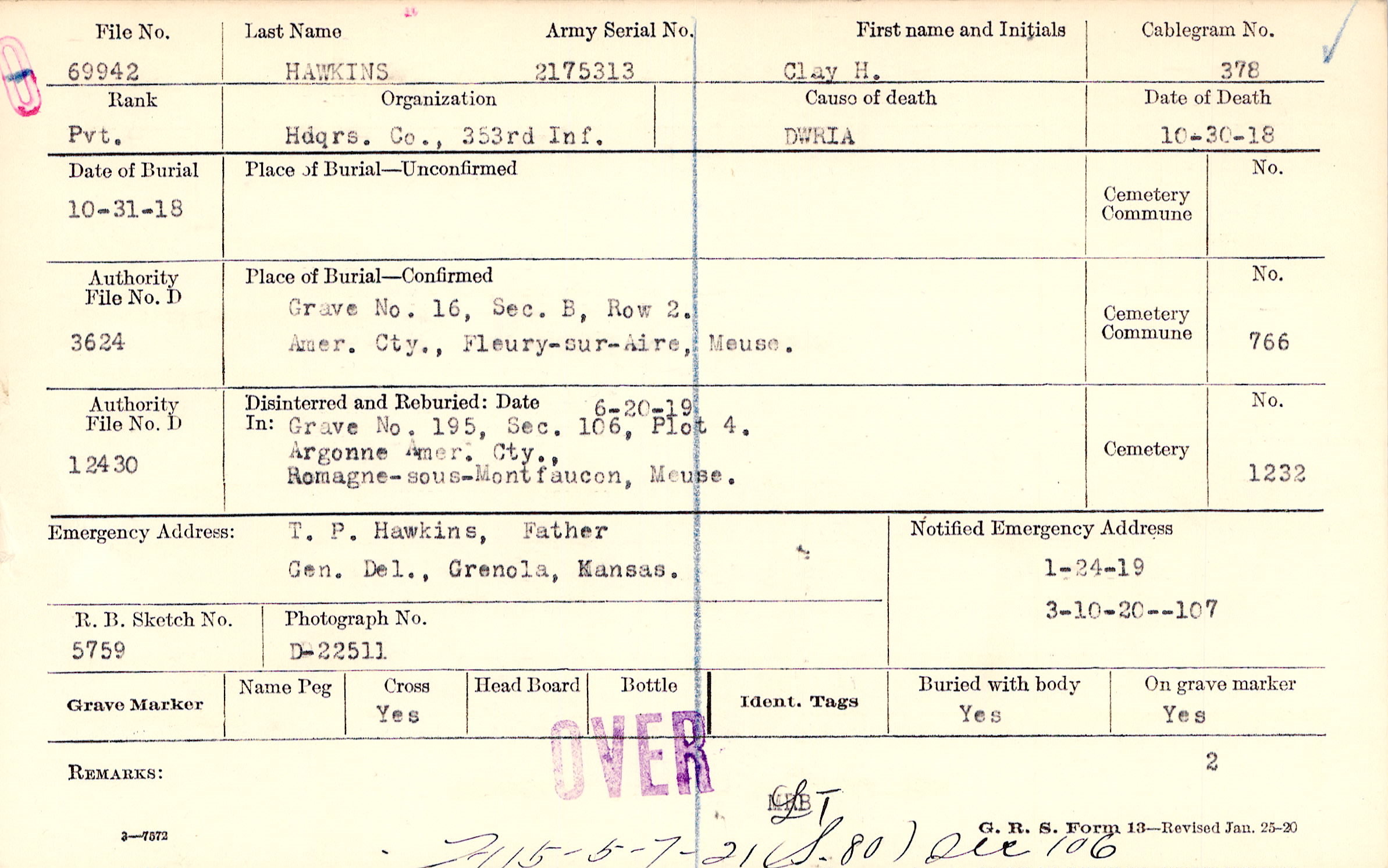 T. P. Hawkins, Father, Gen. Del., Grenola, Kansas.