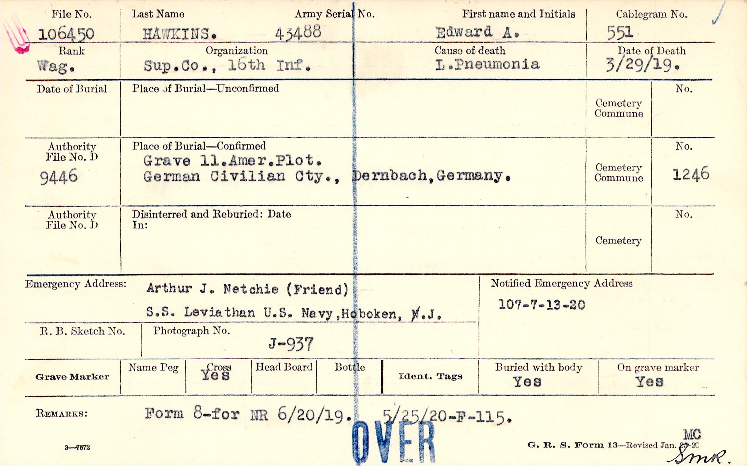 Arthur J. Netchie (Friend), S.S. Leviathan U.S. Navy, Hoboken, N.J.