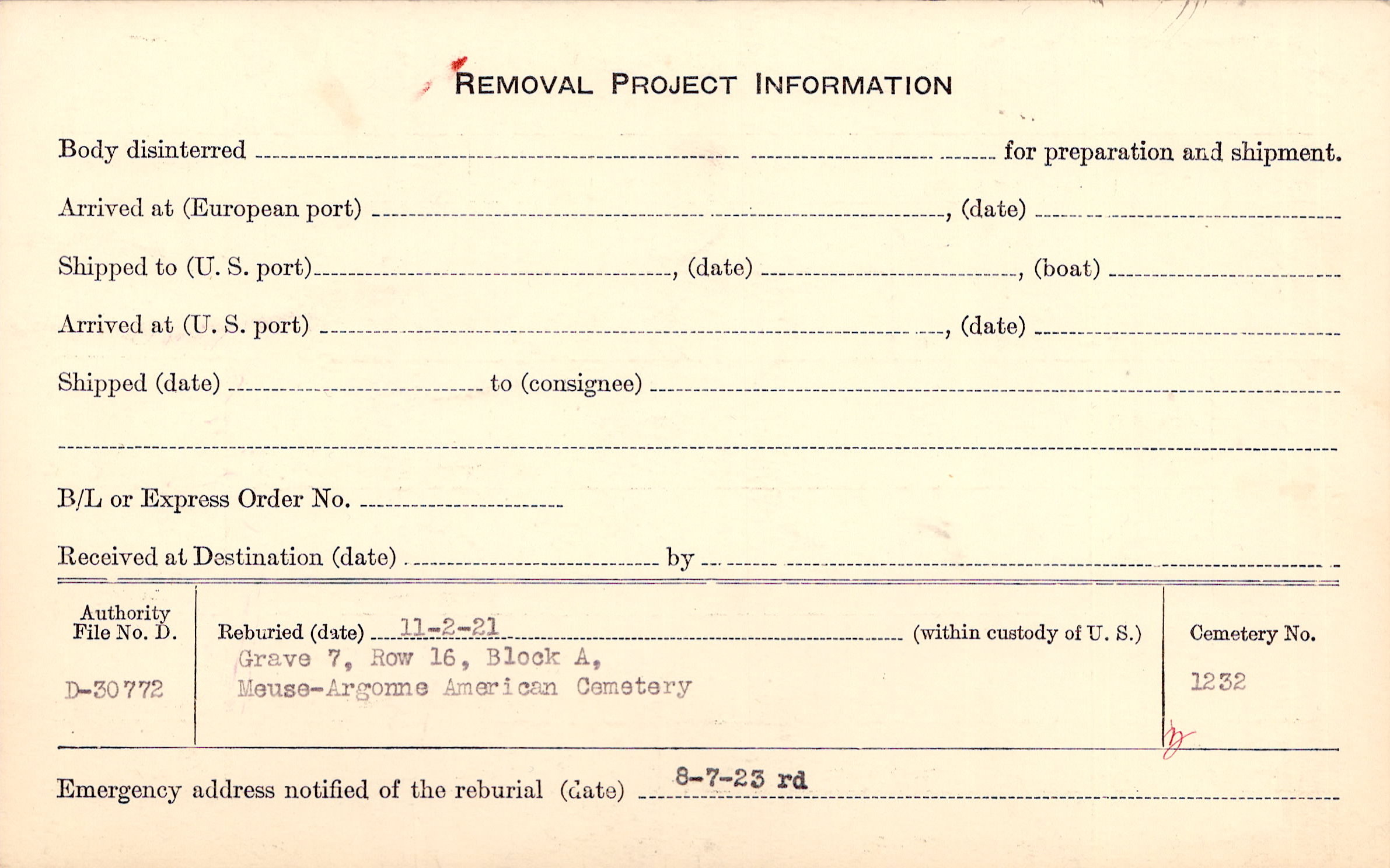 | Reburied (date): |