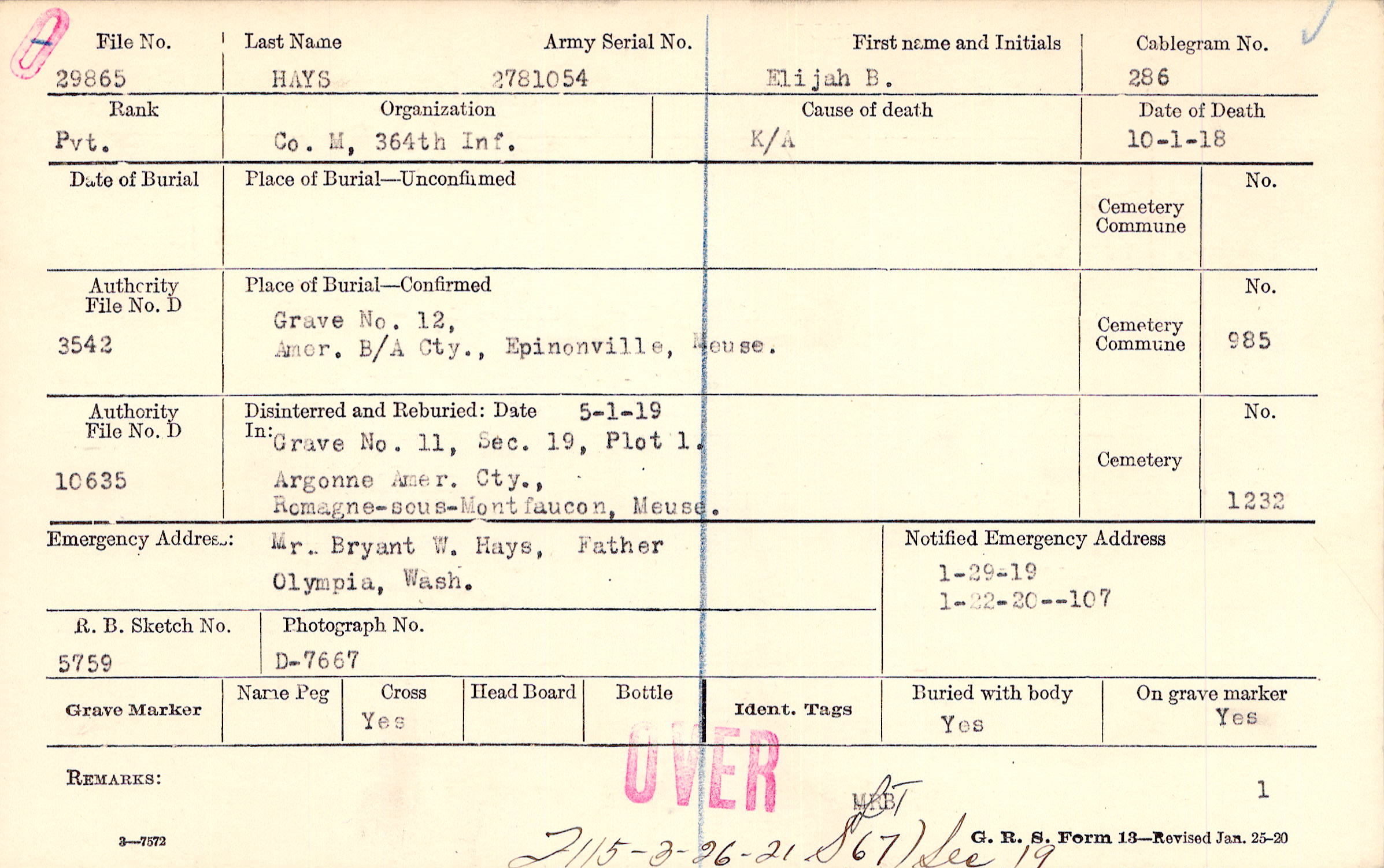 Place of Burial—Confirmed |