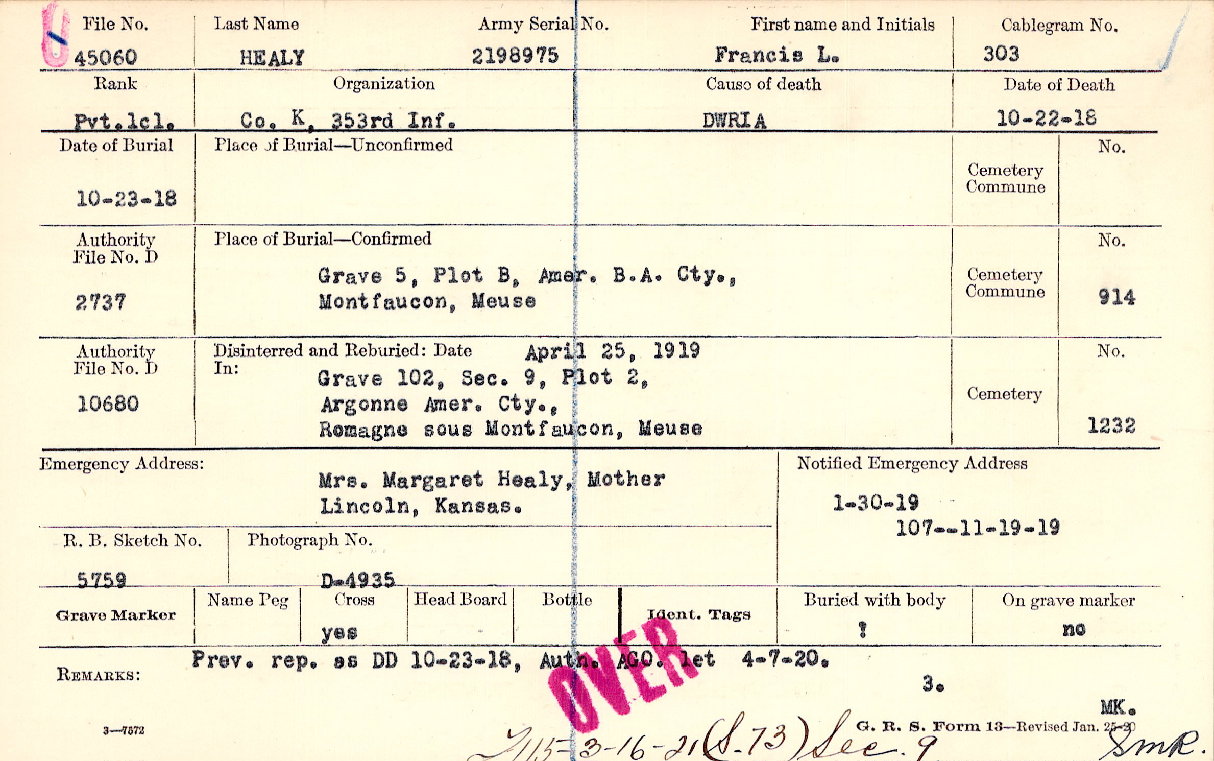 1/30/1919, Form 107: 11/19/1919