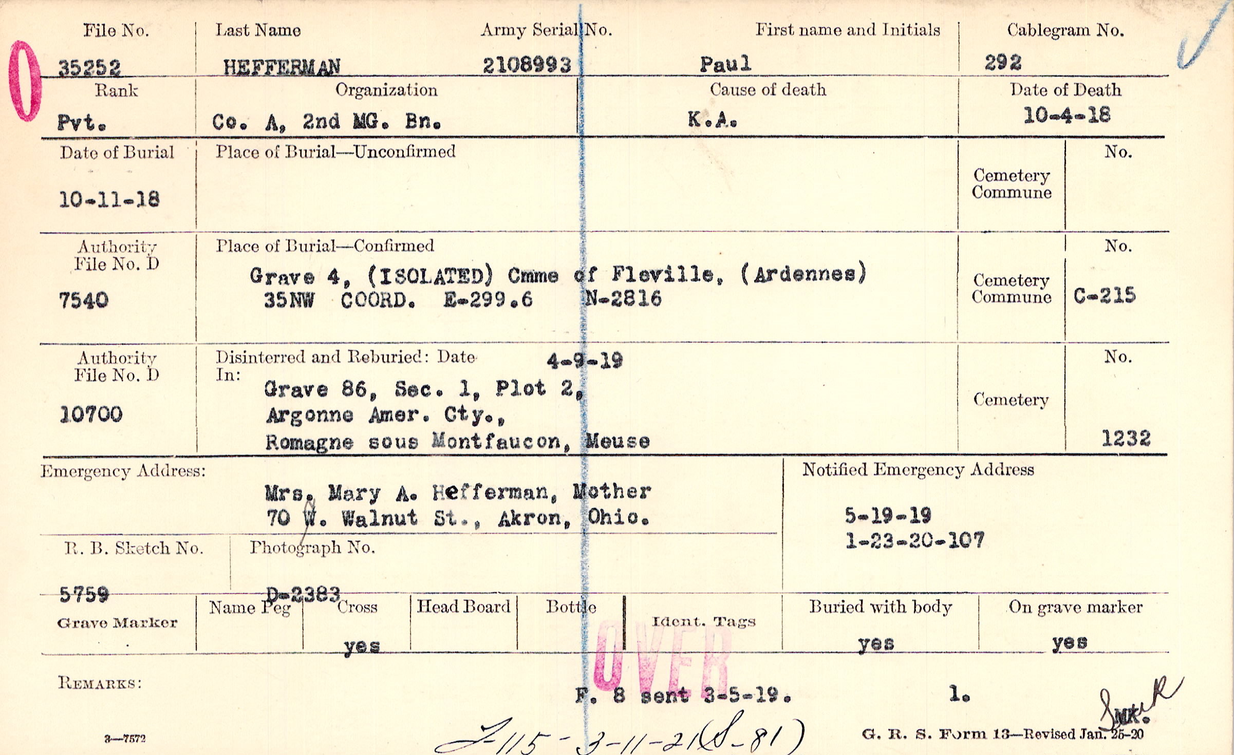 5/19/1919, Form 107: 1/23/1920
