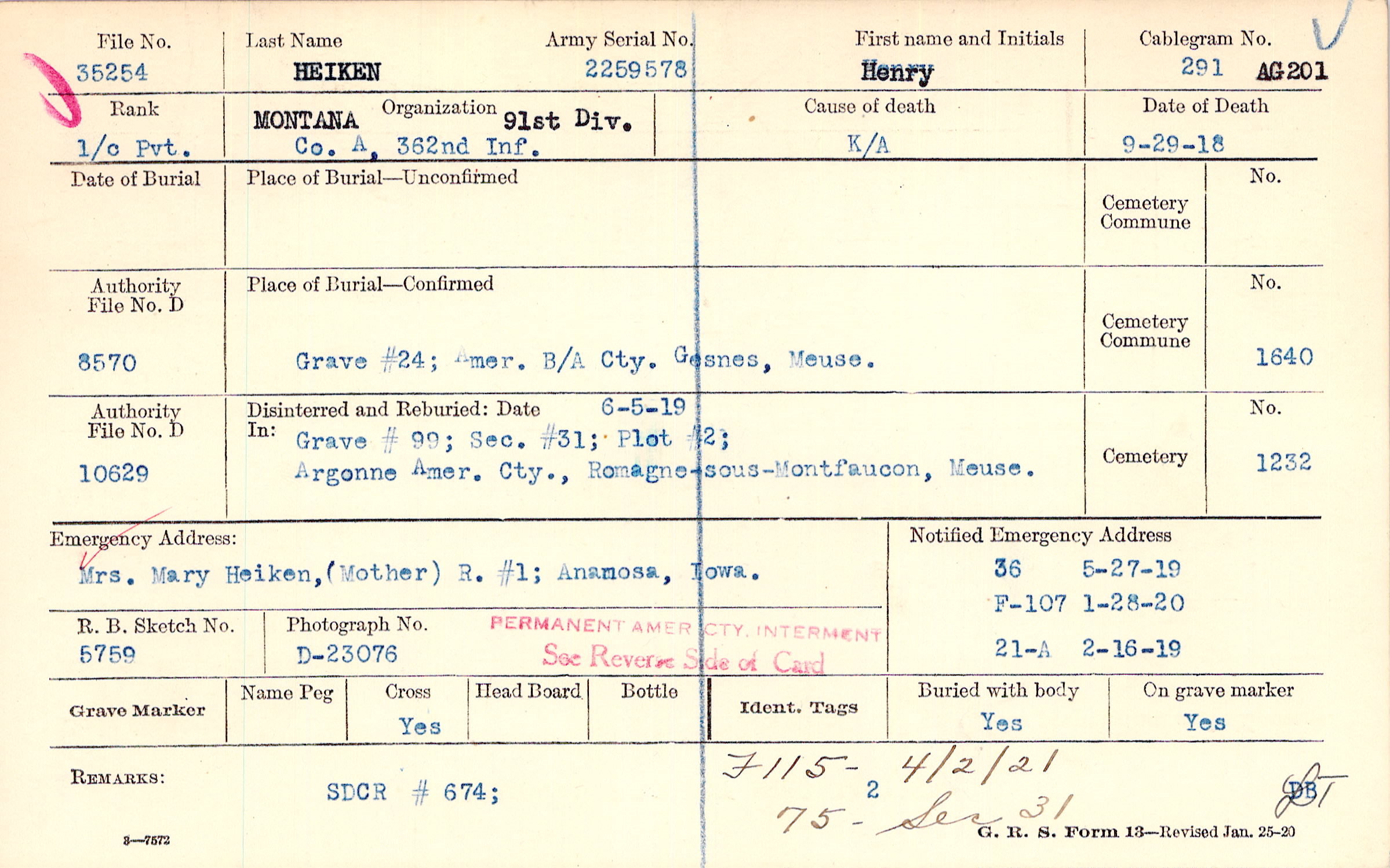 Place of Burial—Confirmed |