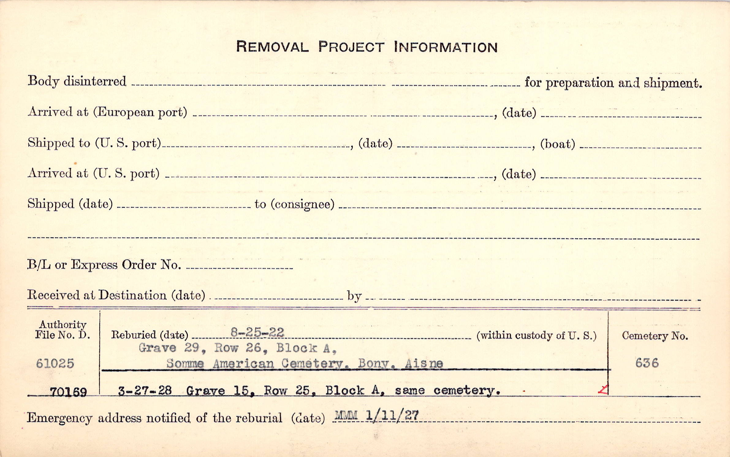 Prior Burial in Foreign Cemetery |