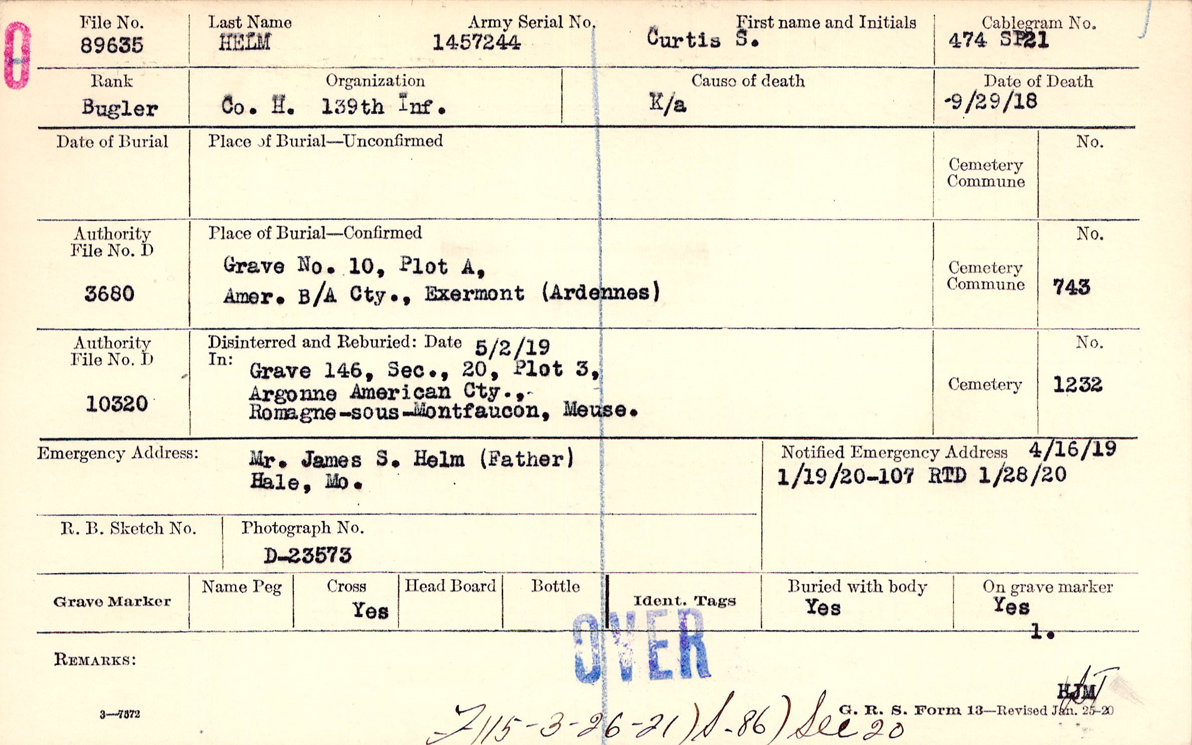 Grave 10, Plot A, Amer. B/A Cty., Exermont (Ardennes)