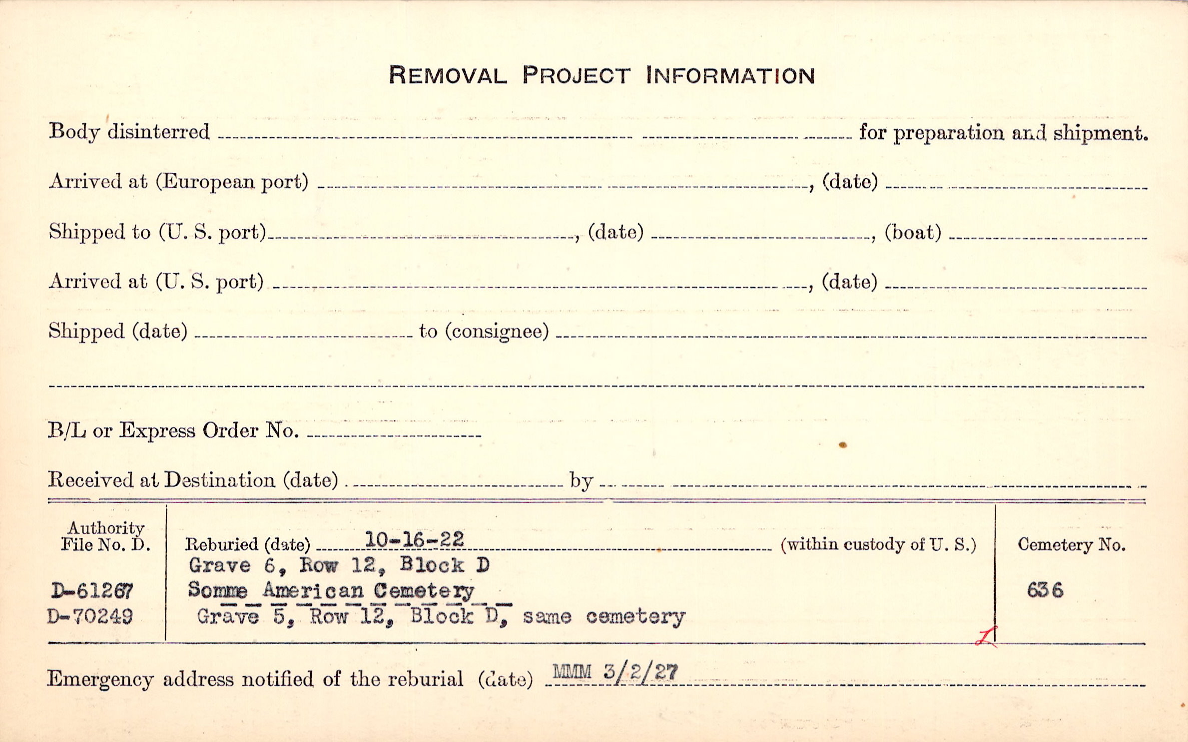 Prior Burial in Foreign Cemetery |