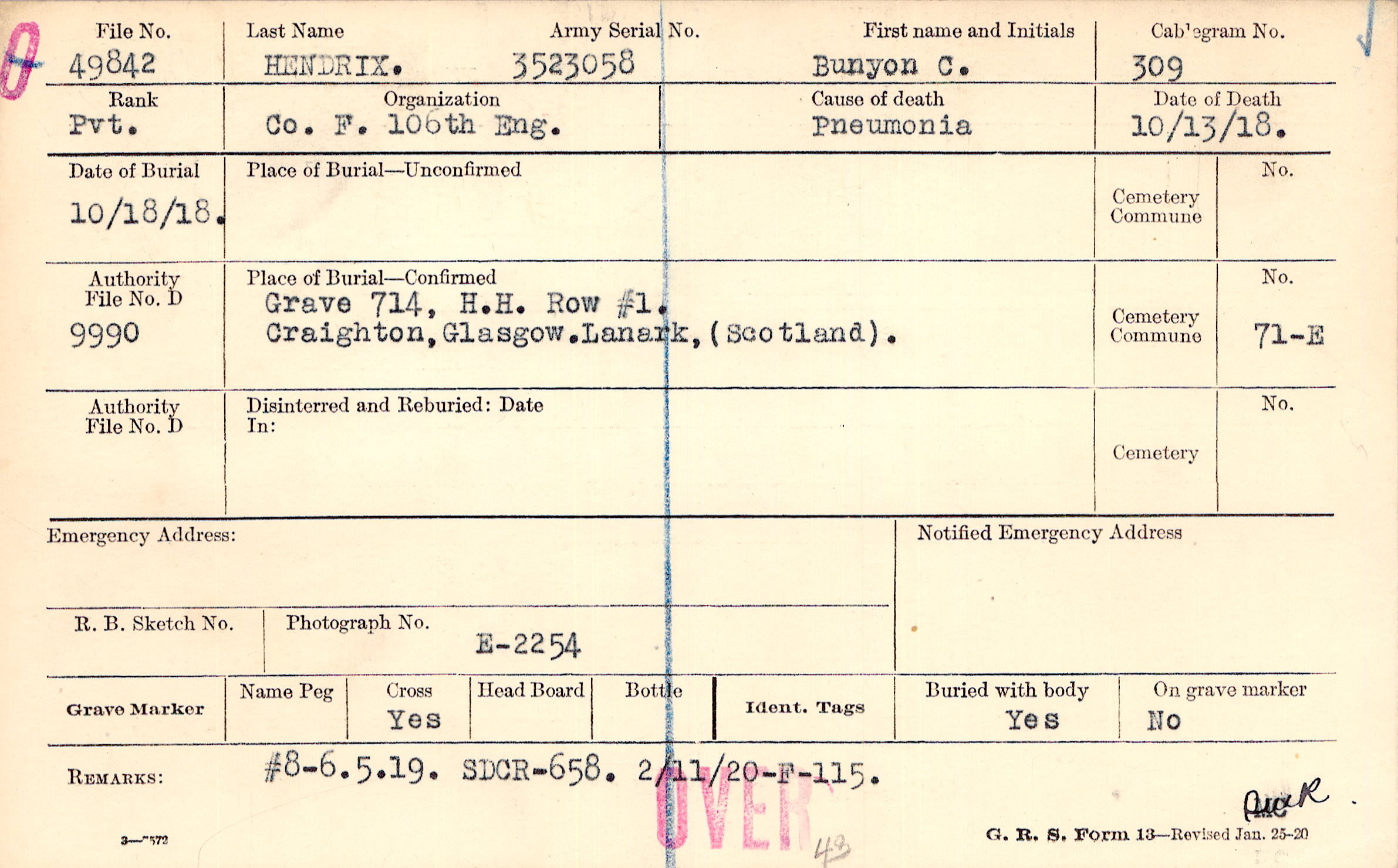 Grave 714, H.H. Row #1., Craighton, Glasgow.Lanark, (Scotland).