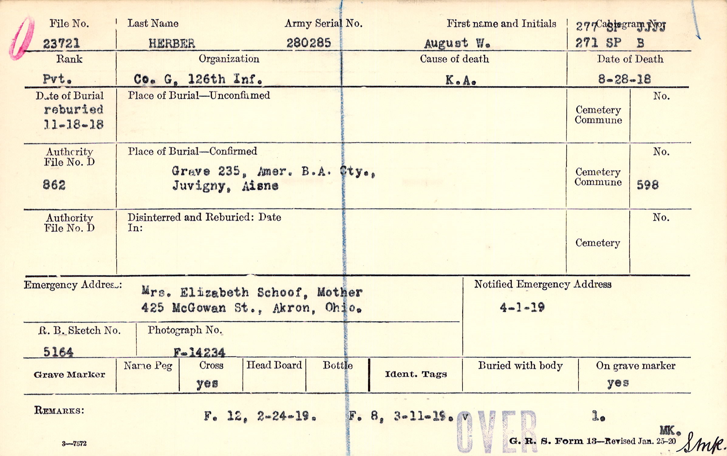 Grave 235, Amer. B/A Cty., Juvigny, Aisne