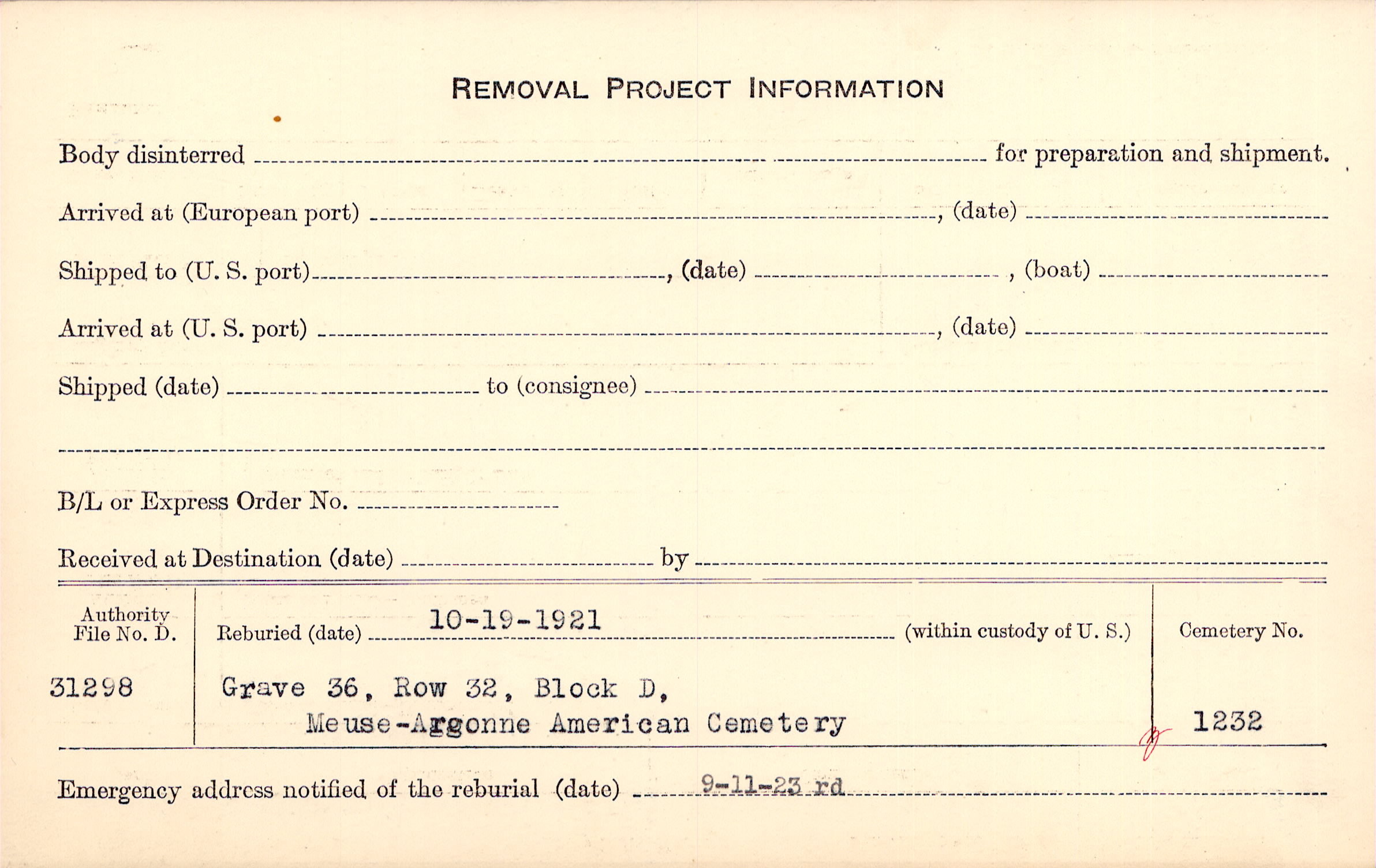 | Reburied (date): |