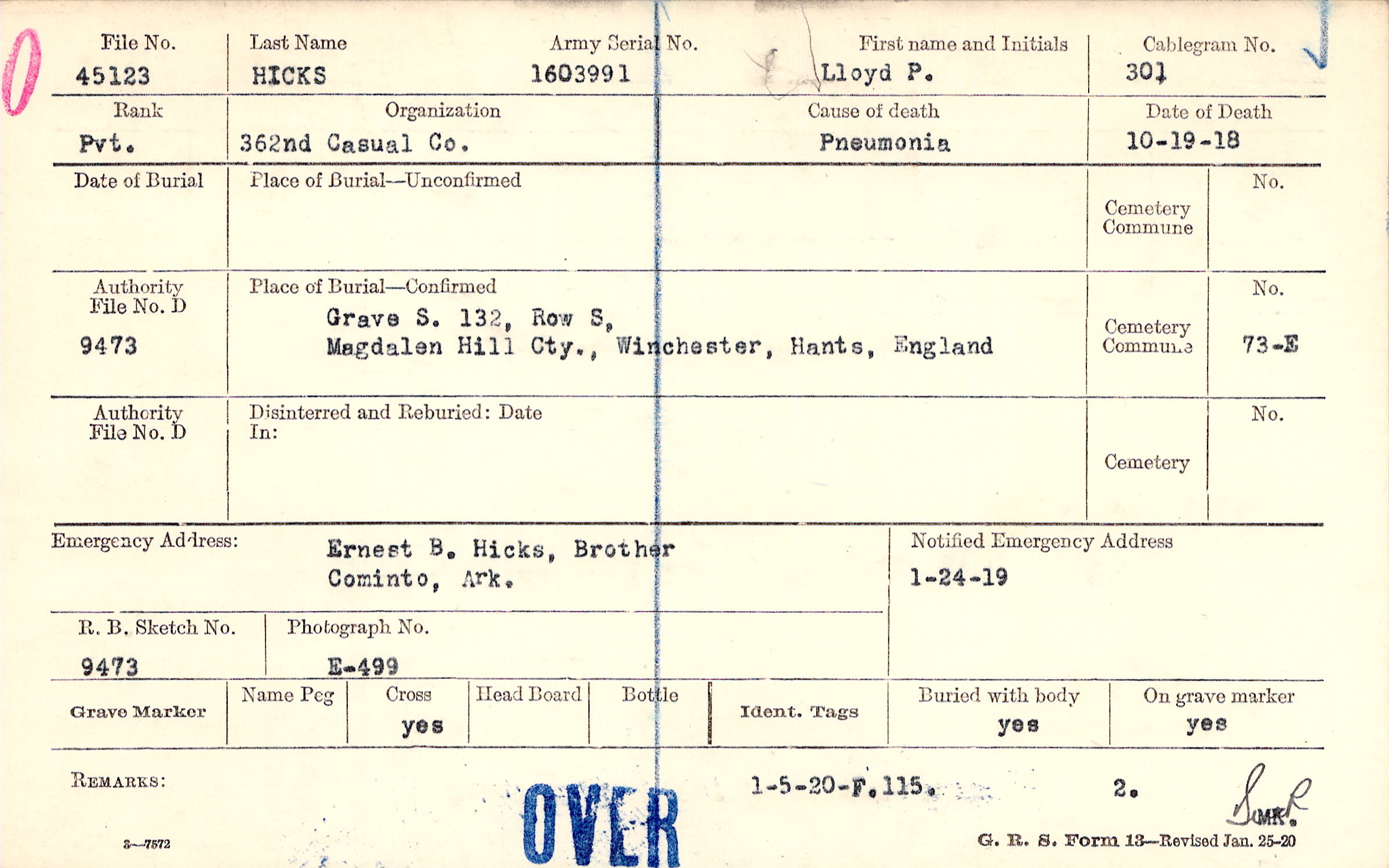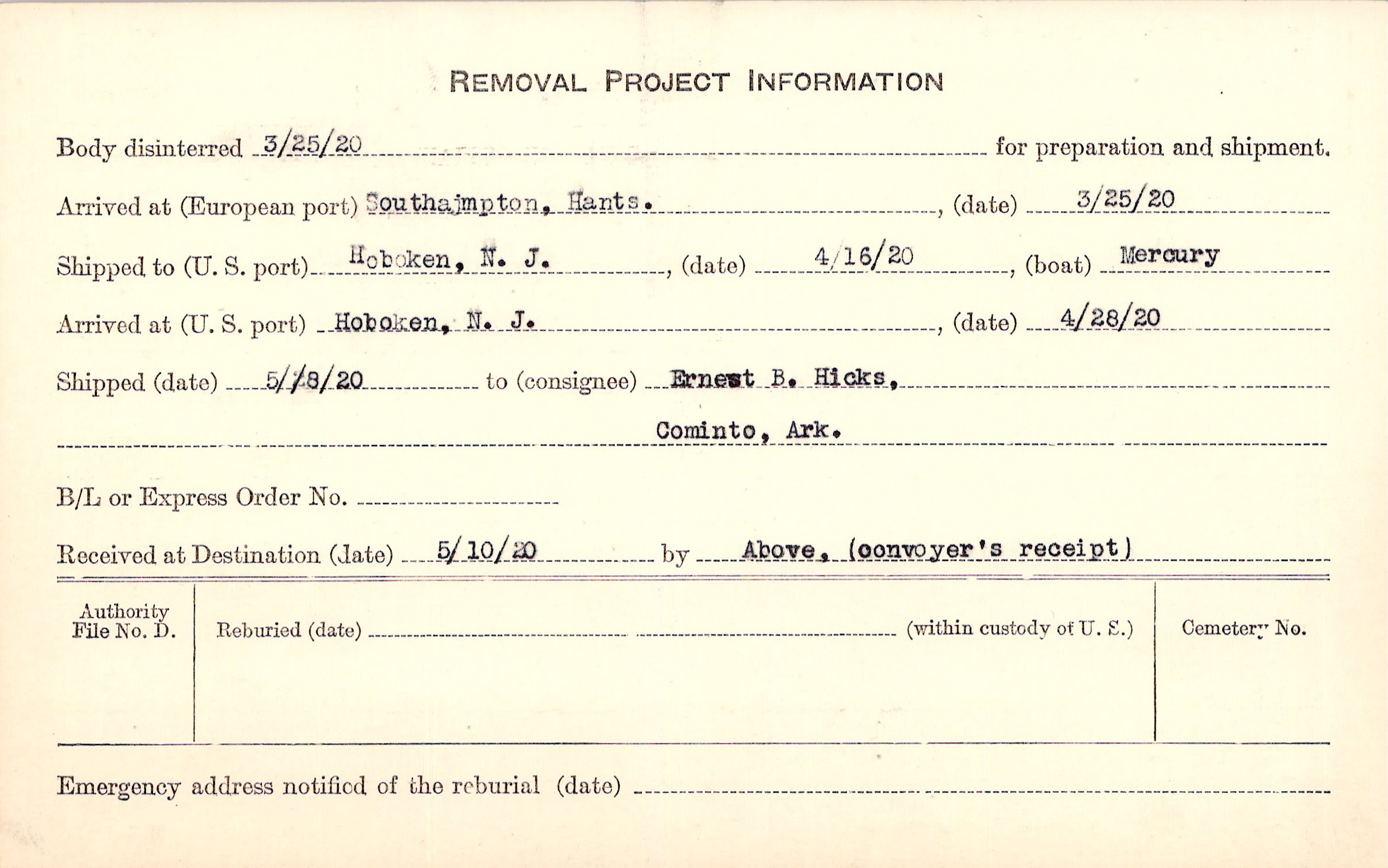Ernest B. Hicks, Brother, Cominto, Ark.