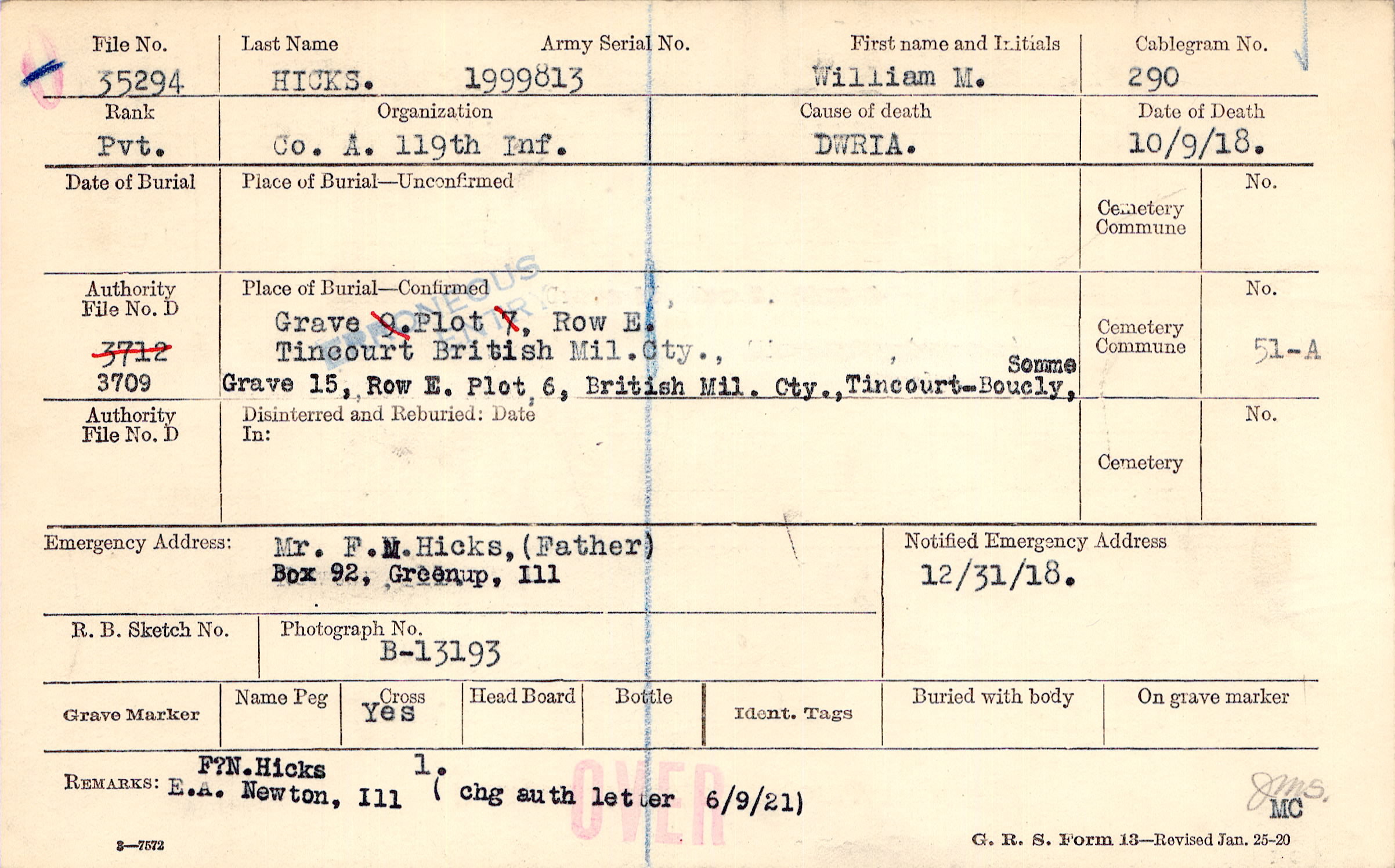 Mr. F. M. Hicks, (Father), Box 92, Greenup, Ill