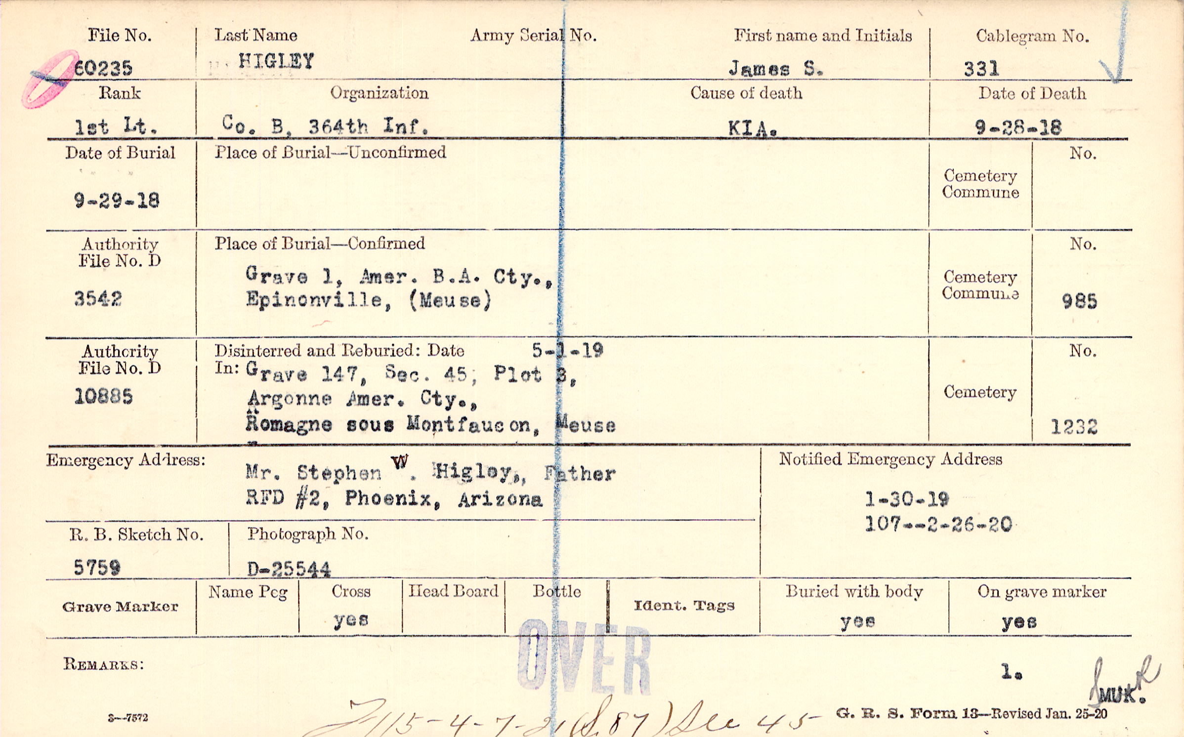 Grave 1, Amer. B/A Cty., Epinonville, Meuse