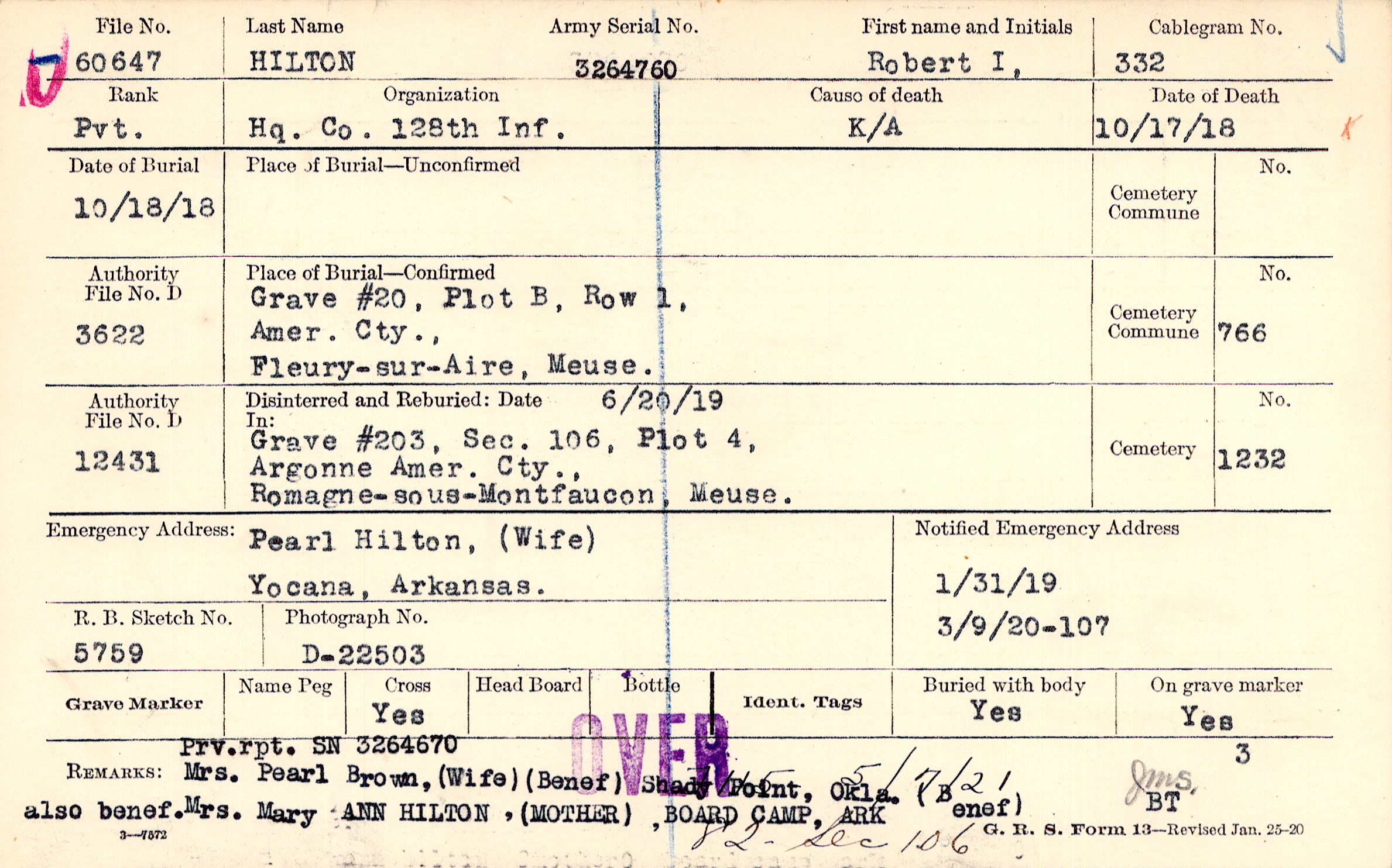 Grave #20, Plot B, Row 1, Amer. Cty., Fleury-sur-Aire, Meuse