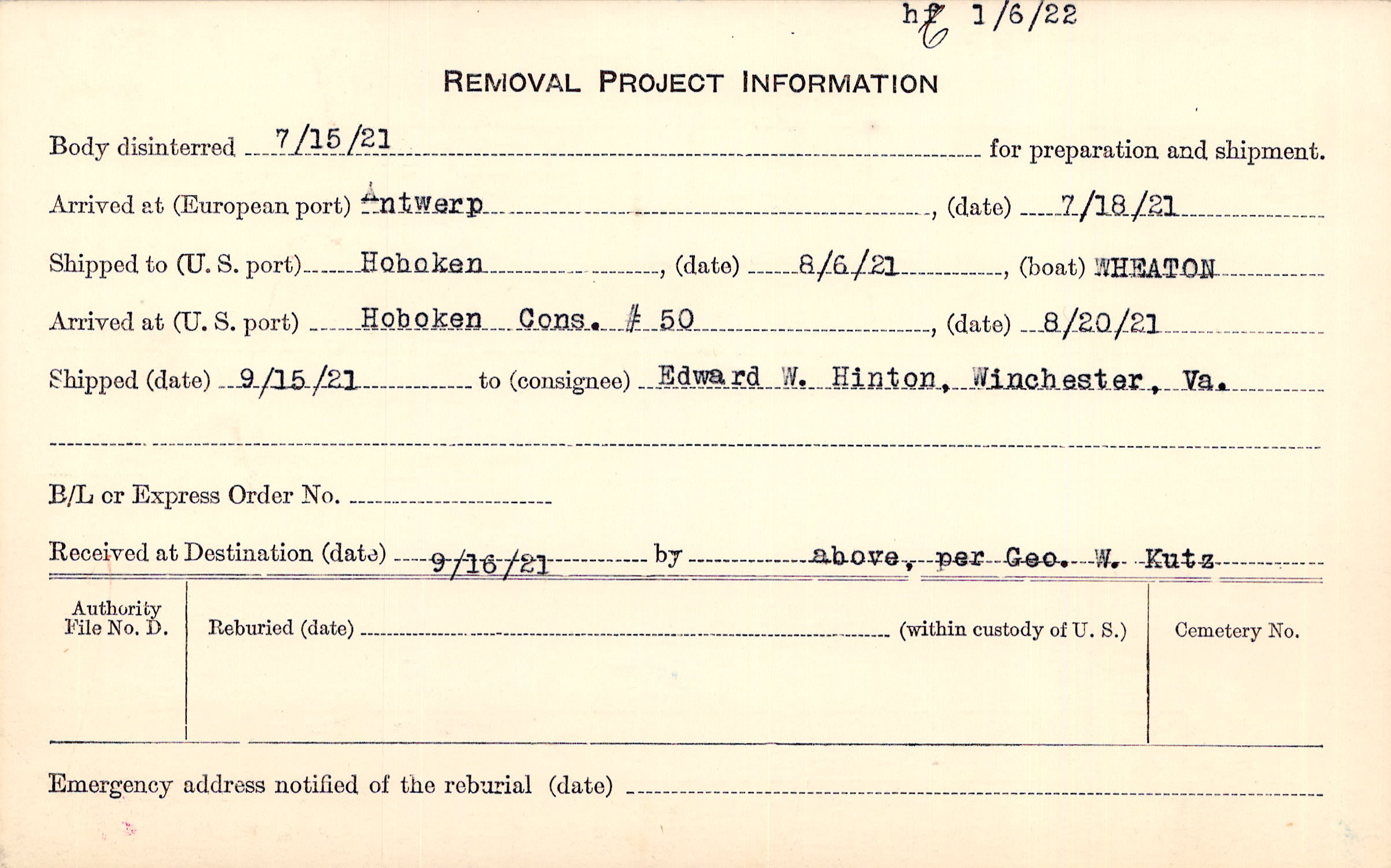 Mr. E.W. Hinton, Father, Clearbrook, Va.