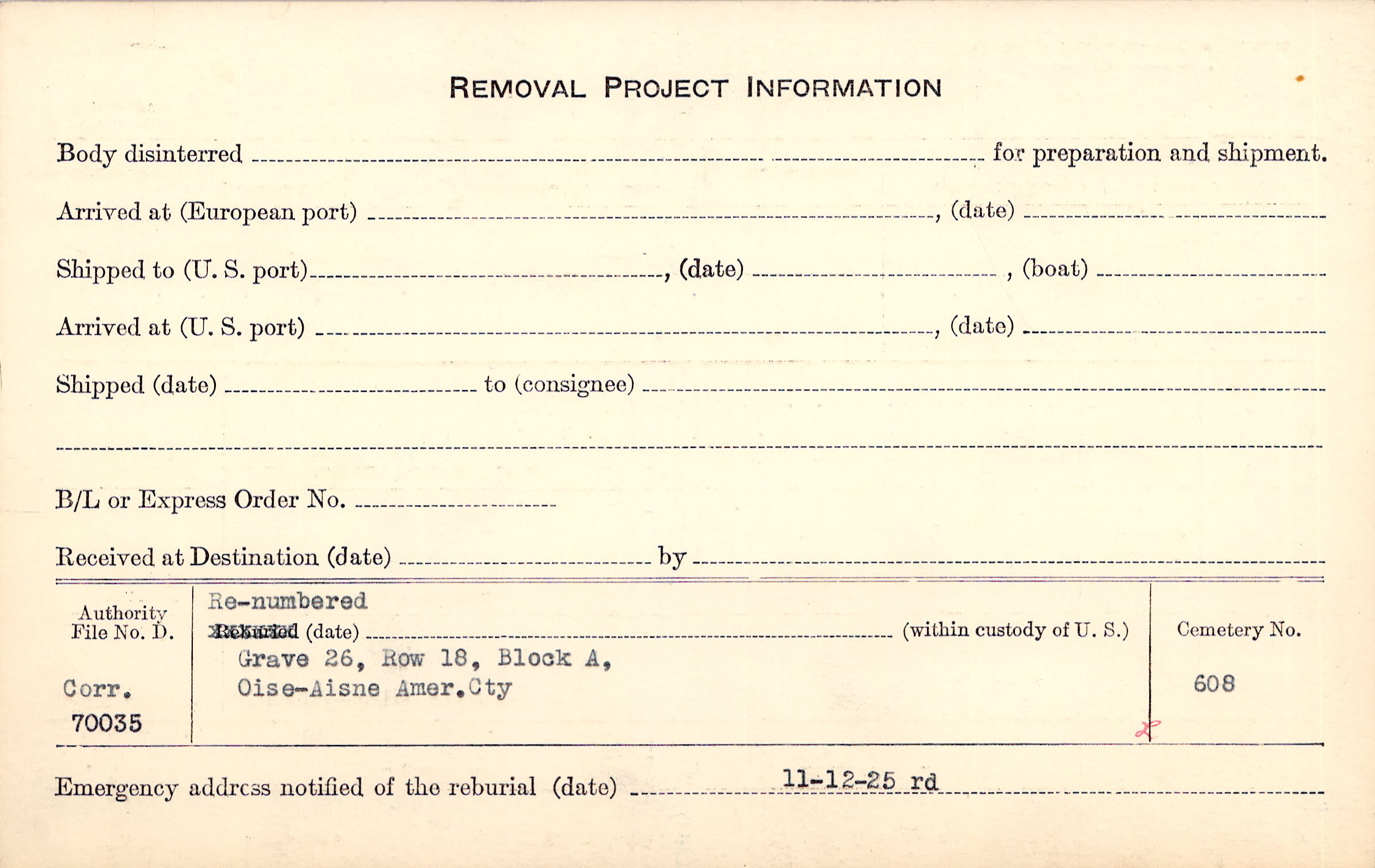| Permanent Burial in Foreign Cemetery |