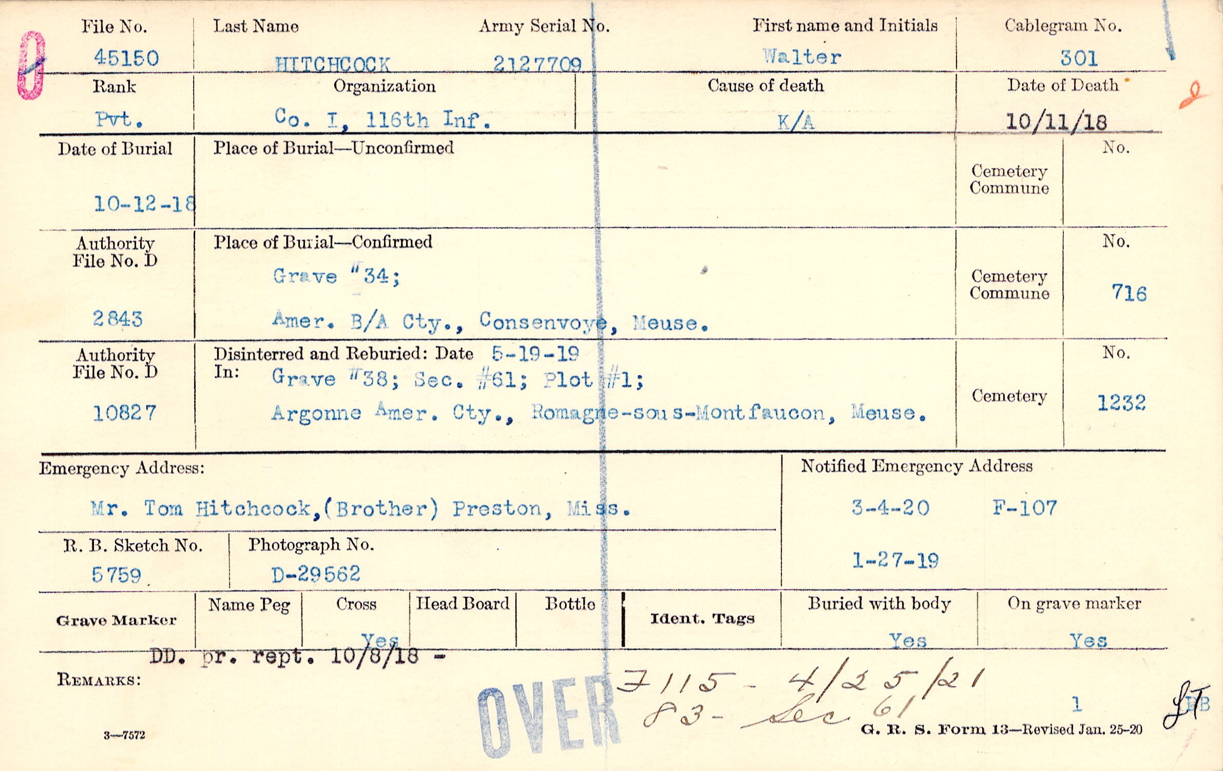 Grave #34, Amer. B/A Cty., Consenvoye, Meuse.