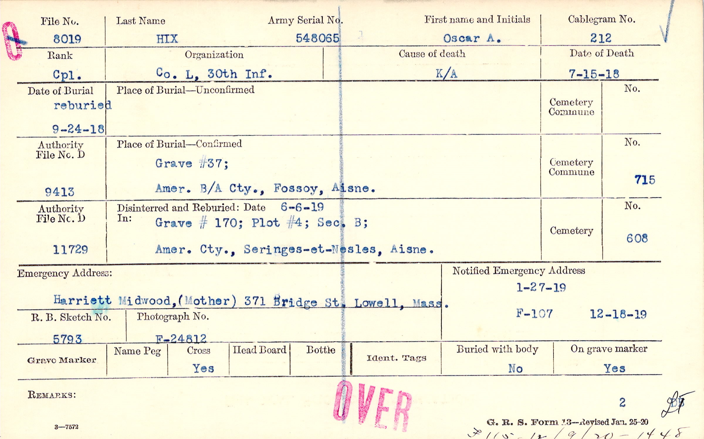 Grave #37, Amer. B/A Cty., Fossoy, Aisne