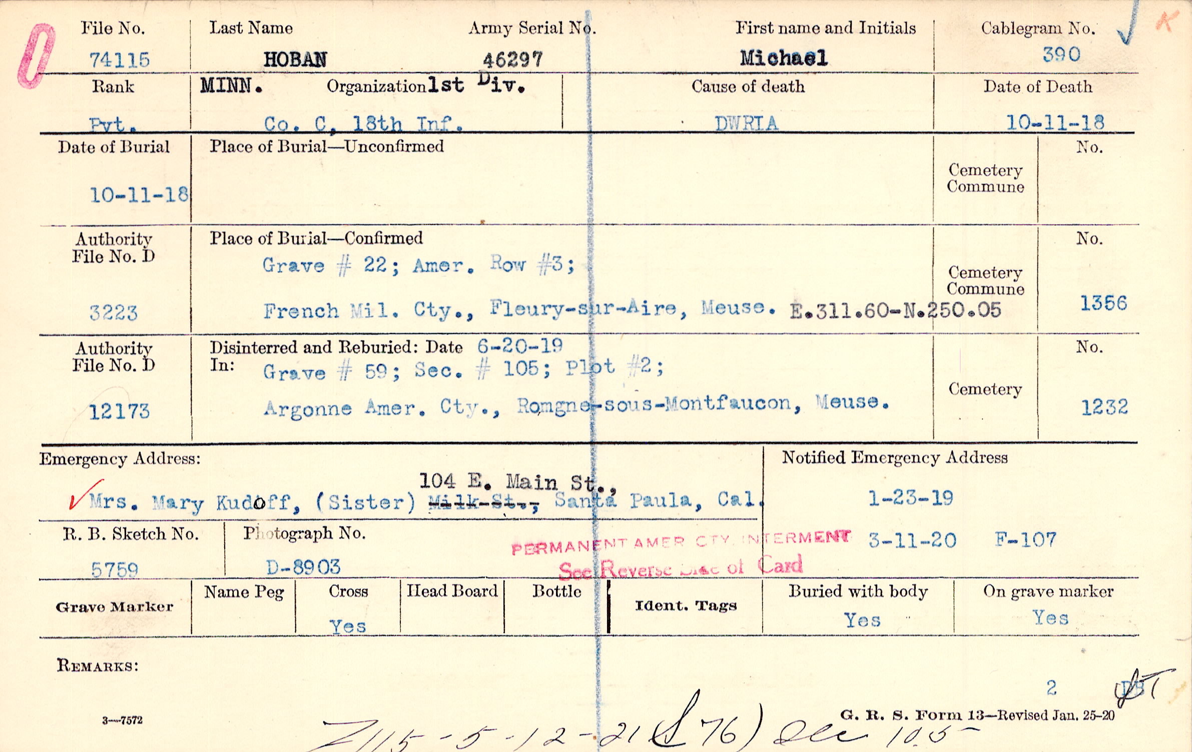 1/23/1919, Form 107: 3/11/1920