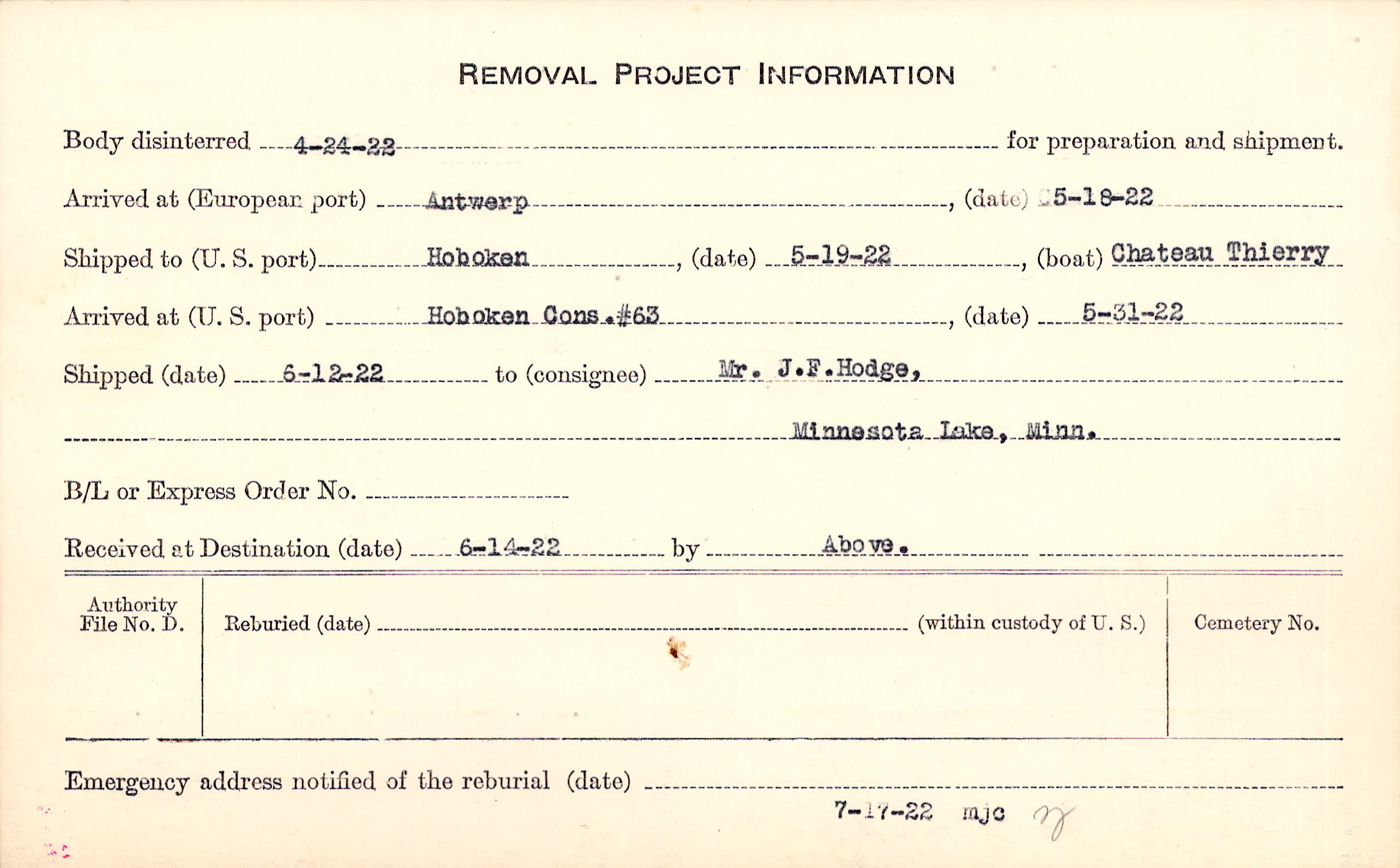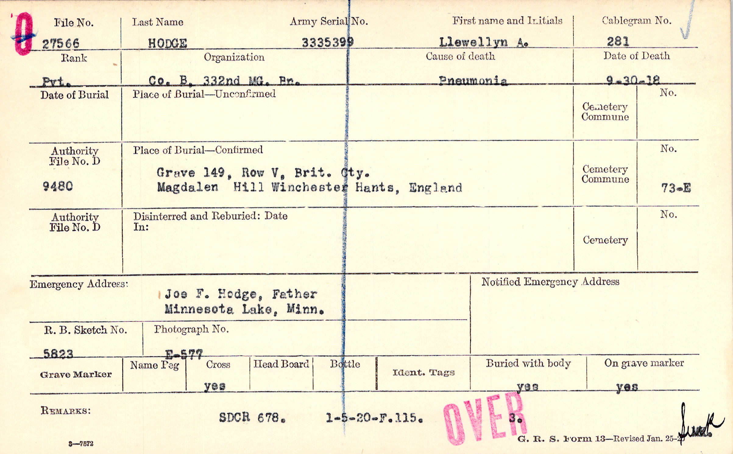 Joe F. Hodge, Father, Minnesota Lake, Minn.