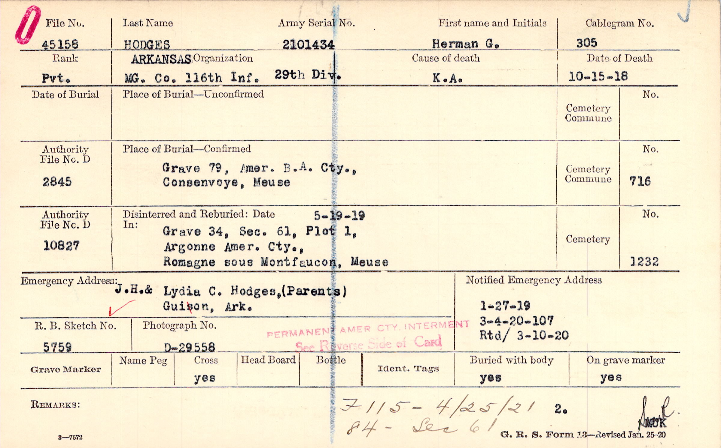 Grave 79, Amer. B/A Cty., Consenvoye, Meuse