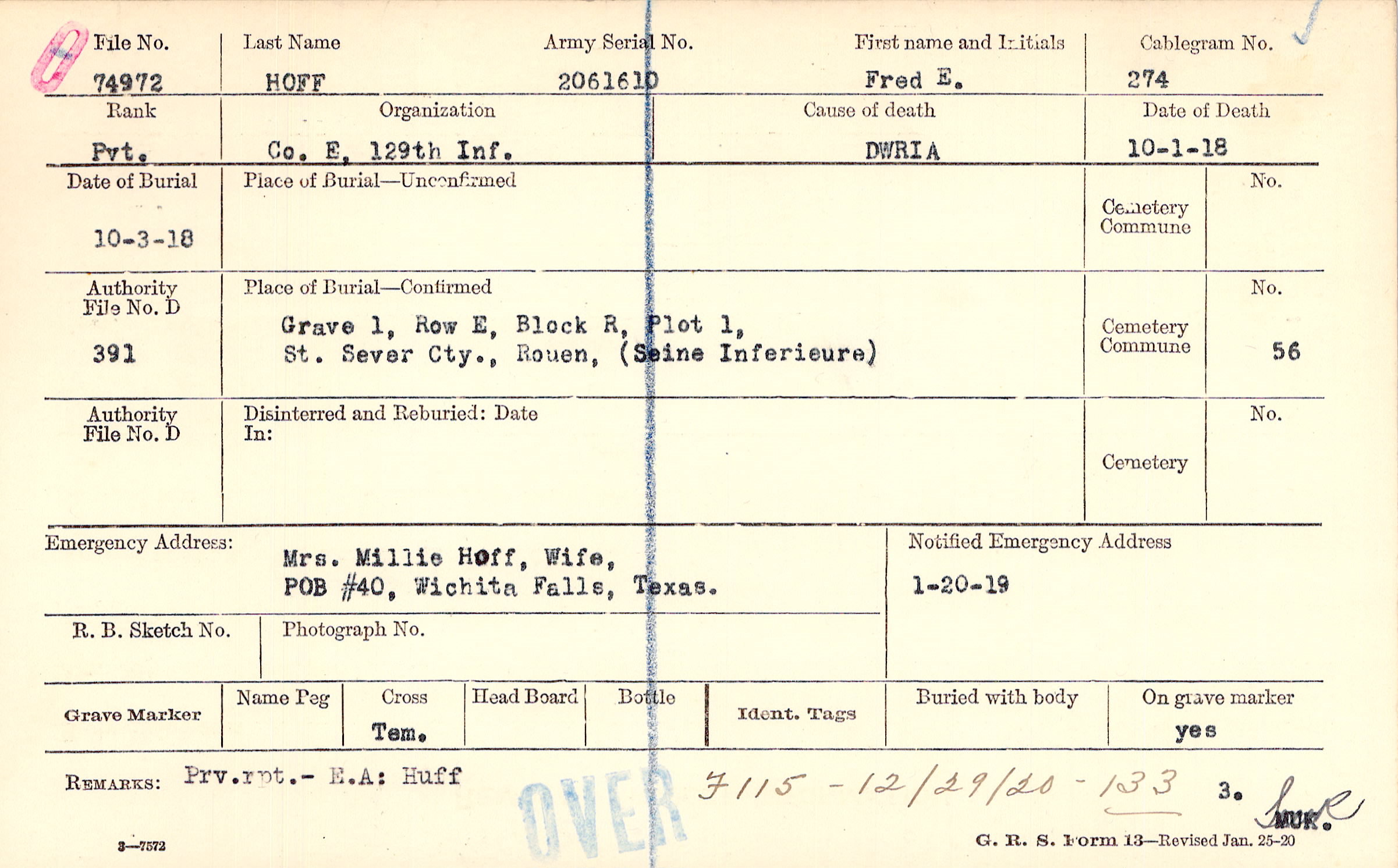 Grave 1, Row E, Block R, Plot 1, St. Sever Cty., Rouen, Saine Inferieure