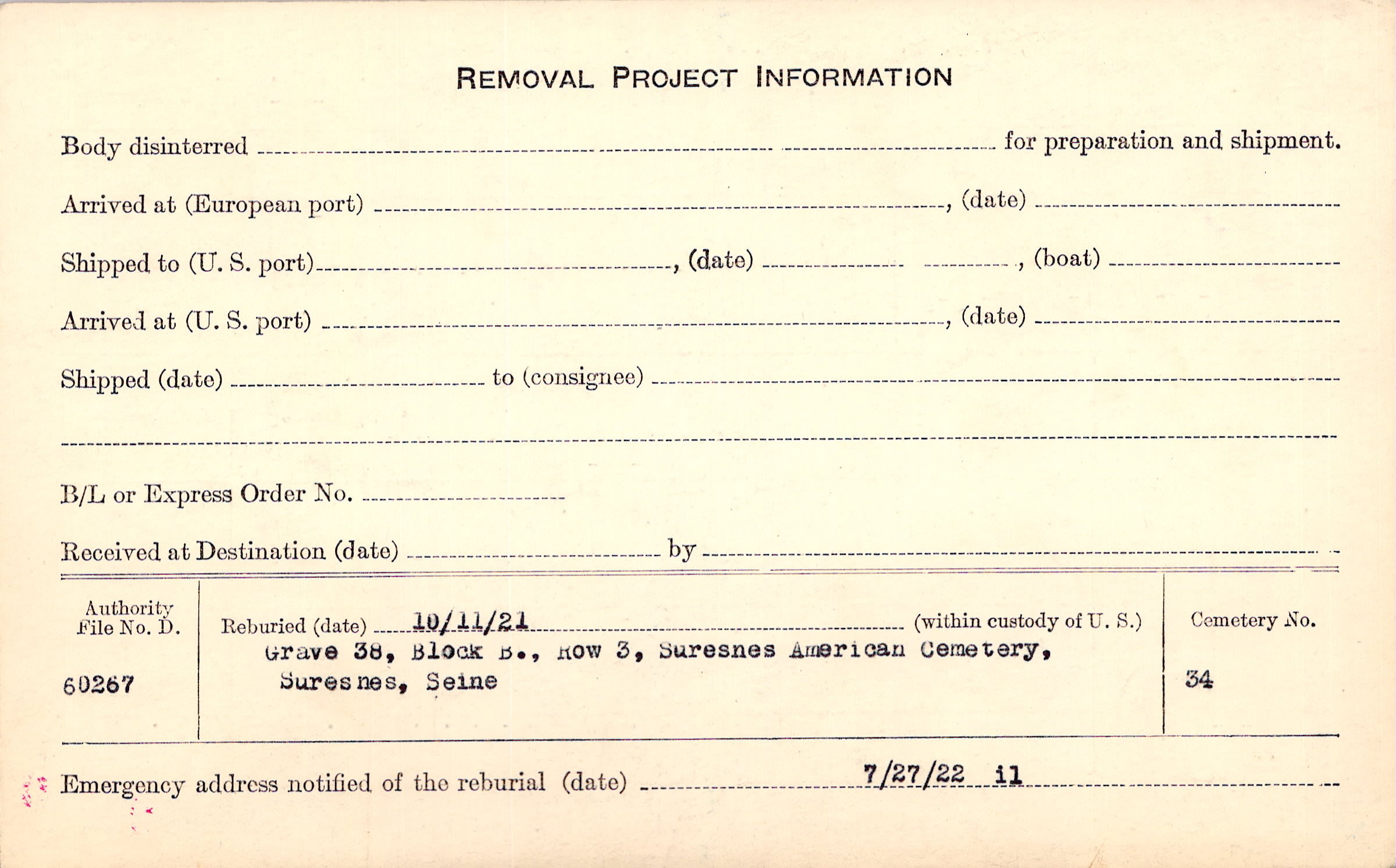 | Permanent Burial in Foreign Cemetery |