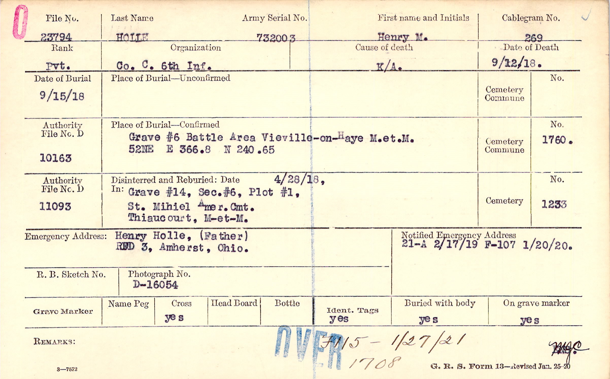 Henry Holle, (Father), RFD 3, Amherst, Ohio.