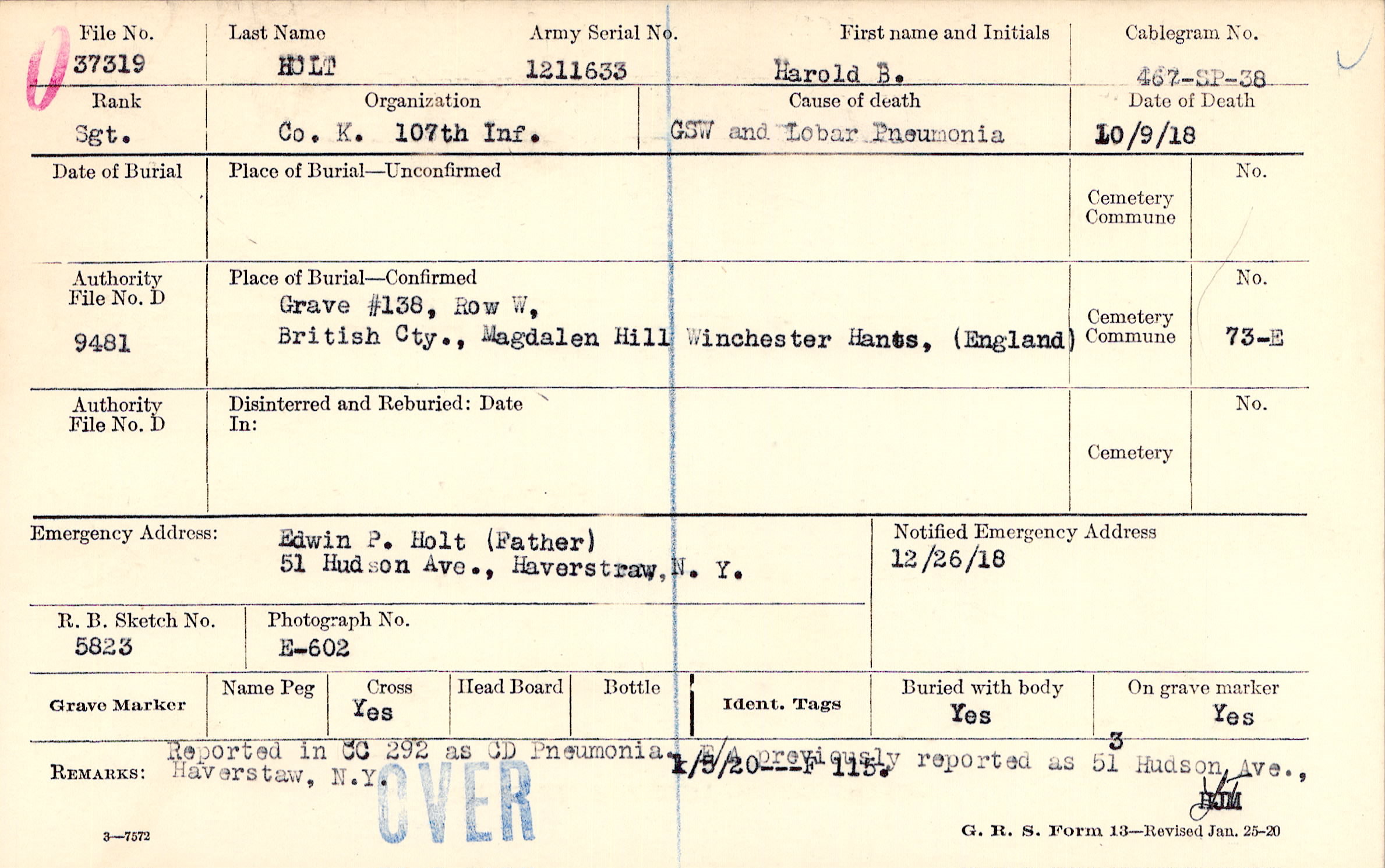 Edwin P. Holt (Father), 51 Hudson Ave., Haverstraw, N.Y.