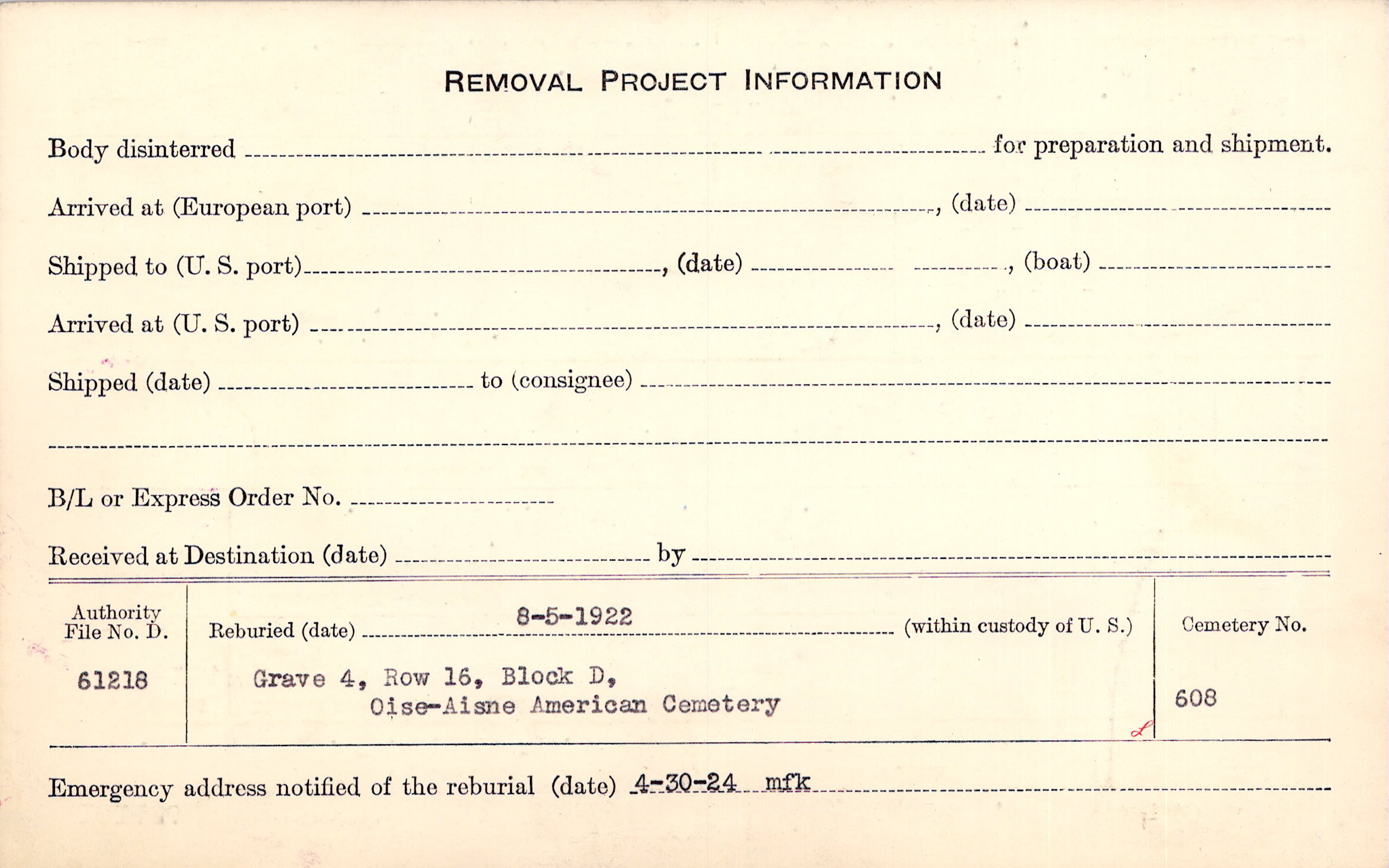Grave # 229, Amer. B/A Cty., Juvigny, Aisne